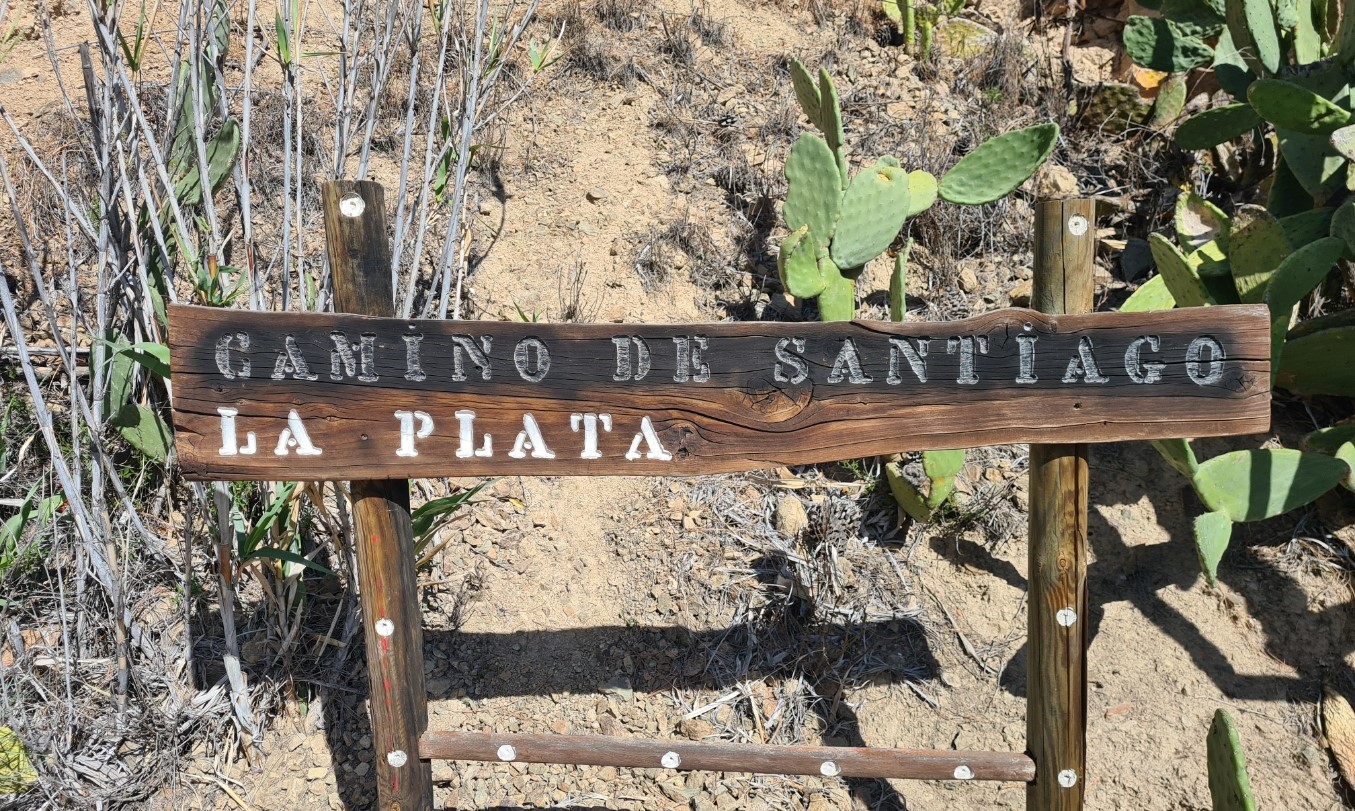 Just prior to the Paso de la Plata, where the road crossed a east/west pass, we halted in the shade of a shelter for hydration and snacks, a cereal bar for me while Teseo cut up an orange with a small Victorinox I carried, before the two of us took some time out for photographs of the views to the east, west and south. The Camino gets a good deal steeper from here and I encouraged Teseo to go on, leaving me to wheeze along in his wake. We shook hands and then, twenty years younger than me, he walked off a good deal faster than I could ever manage. I never saw him again. Such is the transient nature of friends made on trail. Easy-going acquaintance just as easily dissolved.