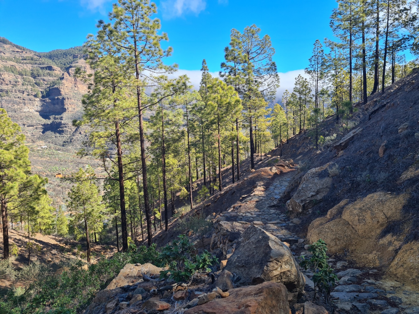 This lovely stretch of path took me down to the Bailico Zona de Acampada, an official camp site amongst the pines that were replanted in the 1950s followed deforestation. I wrote a little on these campsites in another post though I note that the required permits can now be obtained online. These sites amongst the shady Canary Pines provide free parking spots in the mountains for those just venturing up from the coast for day hikes and are popular places. Every now and then the authorities have to close them when there is a high risk of fire in the hotter drier summer months.