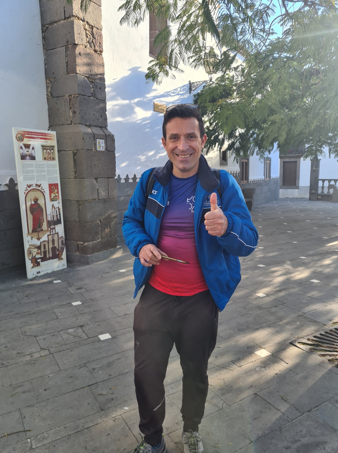 In 1965 Pope Paul VI granted a papal bull, giving Gáldar on Gran Canaria the same privileges of the Compostela jubilee year to pilgrims who visit the Temple of Santiago de los Caballeros. He renewed the bull in 1971 and 1976. In 1982 Pope John Paul II granted “In Perpetuum” (in perpetuity) the Jubilee graces to Gáldar from the Jacobean Holy Year of 1993. So, this trail is an ‘official’ Camino de Santiago. Despite this, it appears to be little known. I hadn’t seen a single person walking the trail yesterday, but having shouldered my pack, locked the door and returned the key, on walking out the front door to the street, I met Teseo, another pilgrim leaving the same accommodation at the same time.