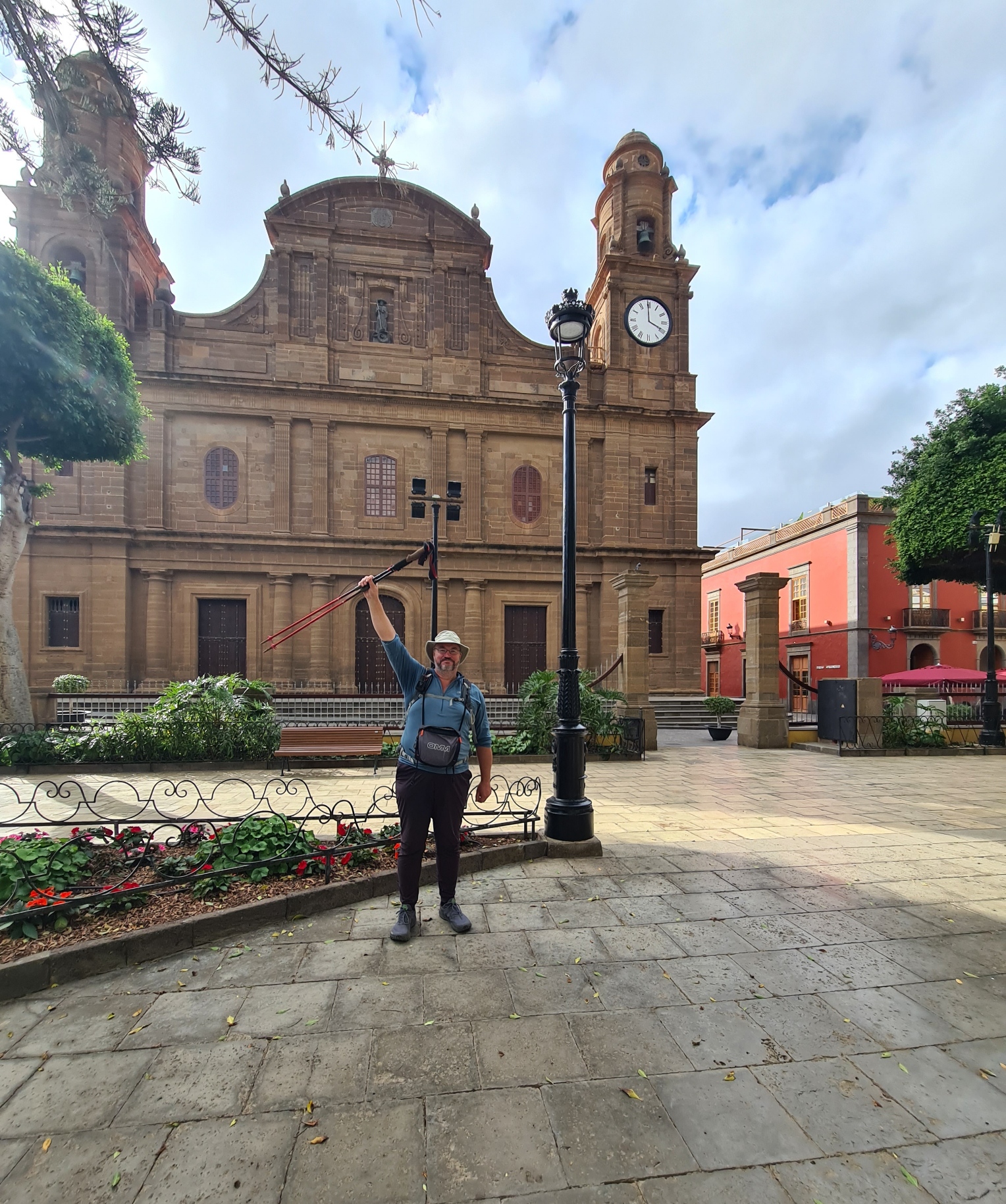 But that was about it. I went off to the large tourism centre to one side of the square looking for a final stamp in my credential. Nuria González was extremely friendly and helpful, not only stamping my passport but also producing a compostela for me, commemorating my completion of the Camino. She gently insisted on taking my photograph, that she would add to their Camino Facebook page. From there, I eschewed visiting a local bar for celebratory drinks, instead walking straight to the town bus station to catch a bus back to Las Palmas for a final overnighter before flying home the following day. Camino de Santiago de Gran Canaria- done!