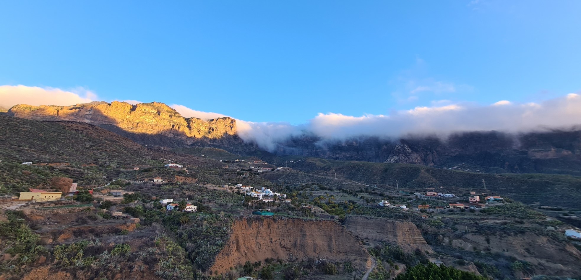 My first day on the Camino de Santiago de Gran Canaria had been too long and too hot and combined with trialling a new (to me) brand of trail shoe, much to my surprise, my feet had suffered as a result. Due to my late start in Maspalomas I had arrived at my overnight accommodation in Tunte well after sunset and too late to go out for a meal. Fortunately I had a modicum of food in my little day pack. By combining this with a few pastries and fruit left by my accommodation host, I had managed both a very late evening meal and also had something for breakfast. I sat on the balcony, clutching a mug of tea and watching the sun rise, beginning to light up the surrounding mountainous hillsides. I was considering my next steps, or even if there should be any next steps. Last night I had been considering quitting. What to do?