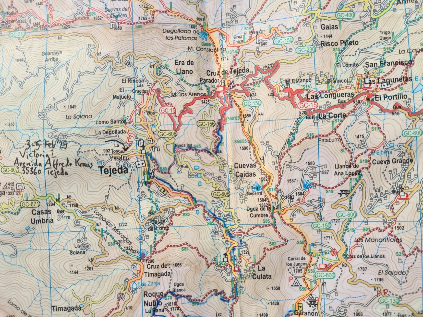 There are also obviously the various map apps and maps that can be downloaded, highlighting walking trails on the island. No doubt you will have your favourite. Be aware that many of these will show a route that a hiker has recorded and it is not necessarily correct, possibly straying off any sort of ‘official’ route. Google maps is especially prone to this. Beside the versions on Wikiloc and elsewhere, the Camino de Santiago de Gran Canaria has it’s own dedicated route map, available through Apple Store and Google Play, highlighting points of interest. I found it glitchy and it never really worked for me, but others I met on trail experienced no issues. While I tend to rely on paper maps and guidebook, I do have the island and many trails, including the Camino, downloaded to my phone via the HiiKer app. This has a choice of map overlays and works well for me in Airplane mode.