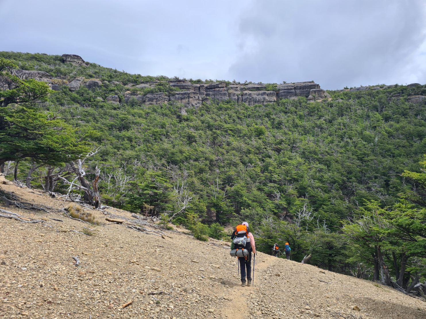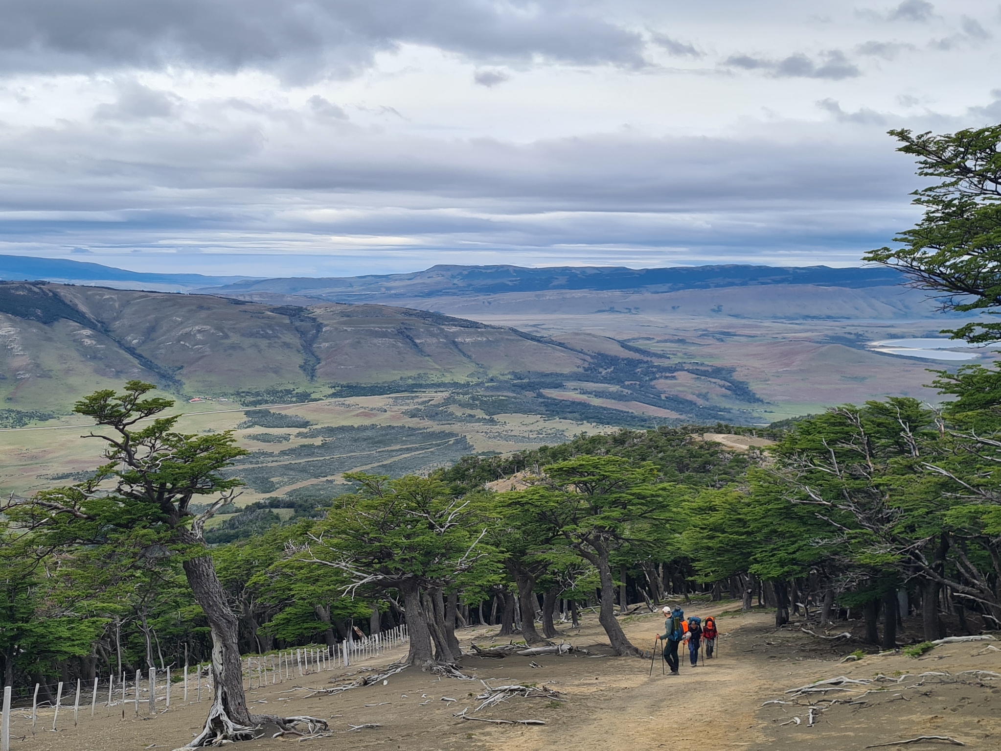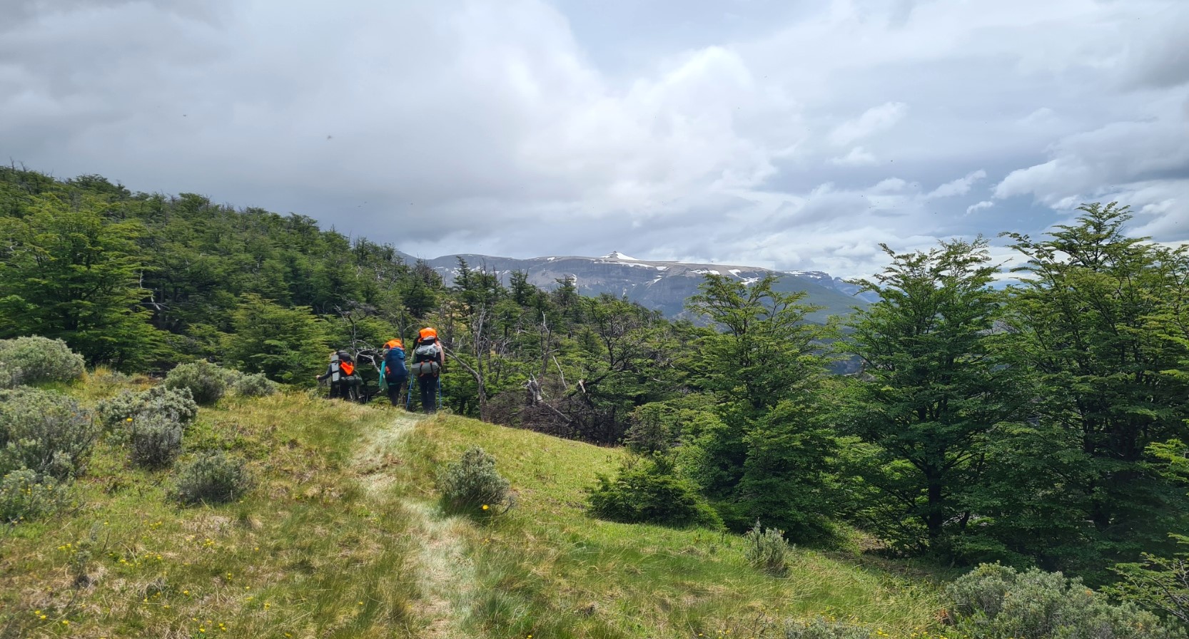 Three Points of the Compass strides out on the first of four days on the Fjällräven Classic Chile 2024. Much of the day was spent amongst the trees, with distant mountains only occasionally slipping in to view.