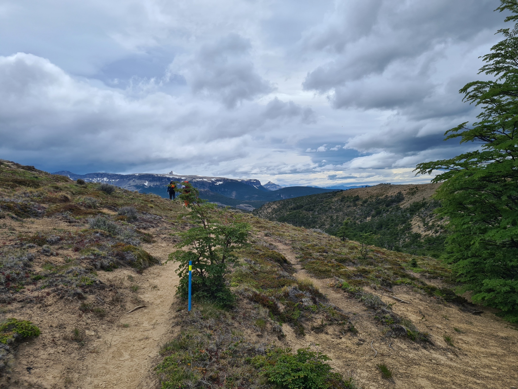 The climb became steeper and wound left, right, left, right, left and up. I began to catch and pass some of those that swept past me earlier as they paused for breaks, to adjust packs, or inspect feet. On just a couple of occasions the forest opened up, giving views across to snow dotted tops. Cerro Mocho was the first checkpoint, reached after 5.3km. The group of three volunteers at this checkpoint were by far the most enthusiastic of them all, and I always recognised them at subsequent checkpoints over the coming days as they leapfrogged their way along. Lots of enthusiastic cheers, and blowing of whistles as hikers came into view. One of their number was keen to teach something of the culture behind mate, and allow anyone that wanted to, to sample this caffeine rich herbal tea from his favourite gourd (also called a mate), with its distinctive bombilla, a silver straw. It is the social aspect and sharing of this drink that is central to its culture.