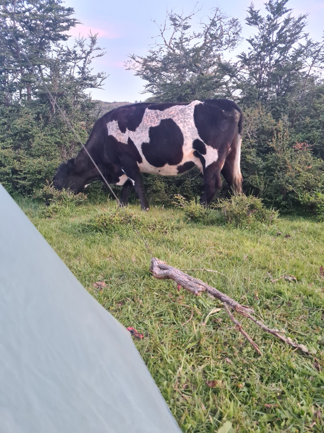 Horse riding tourists twice passed my tent, each strung out group led by a gaucho. I occasionally stirred as grazing cattle and loose horses approached the tent, but they were unconcerned about my presence so I likewise ignored them. I woke later as I had grown cold and was a little surprised to see it was eight in the evening. I changed into trousers, put on an alpha fleece and puffy, and returned to the bar tent, for beers, convo and music.