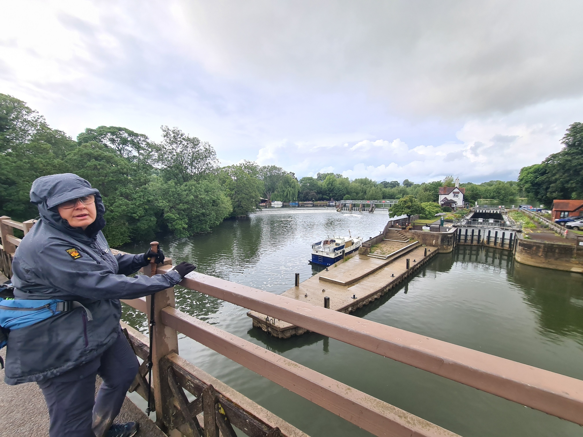 The end came slowly, but we eventually began the long descent to Streatley, positioned on the near bank of the River Thames. Not far from the town we passed a sign that informed us that Ivinghoe Beacon was 44 miles away. We were almost at the half way point of the entire trail. I had stayed at the Youth Hostel in Streatley the last time I walked the Ridgeway but we were both looking forward to something a bit more comfortable for tonight. The rain kept falling and it was rush hour, the cars and vans almost at a halt as they struggled to pass through wet town.