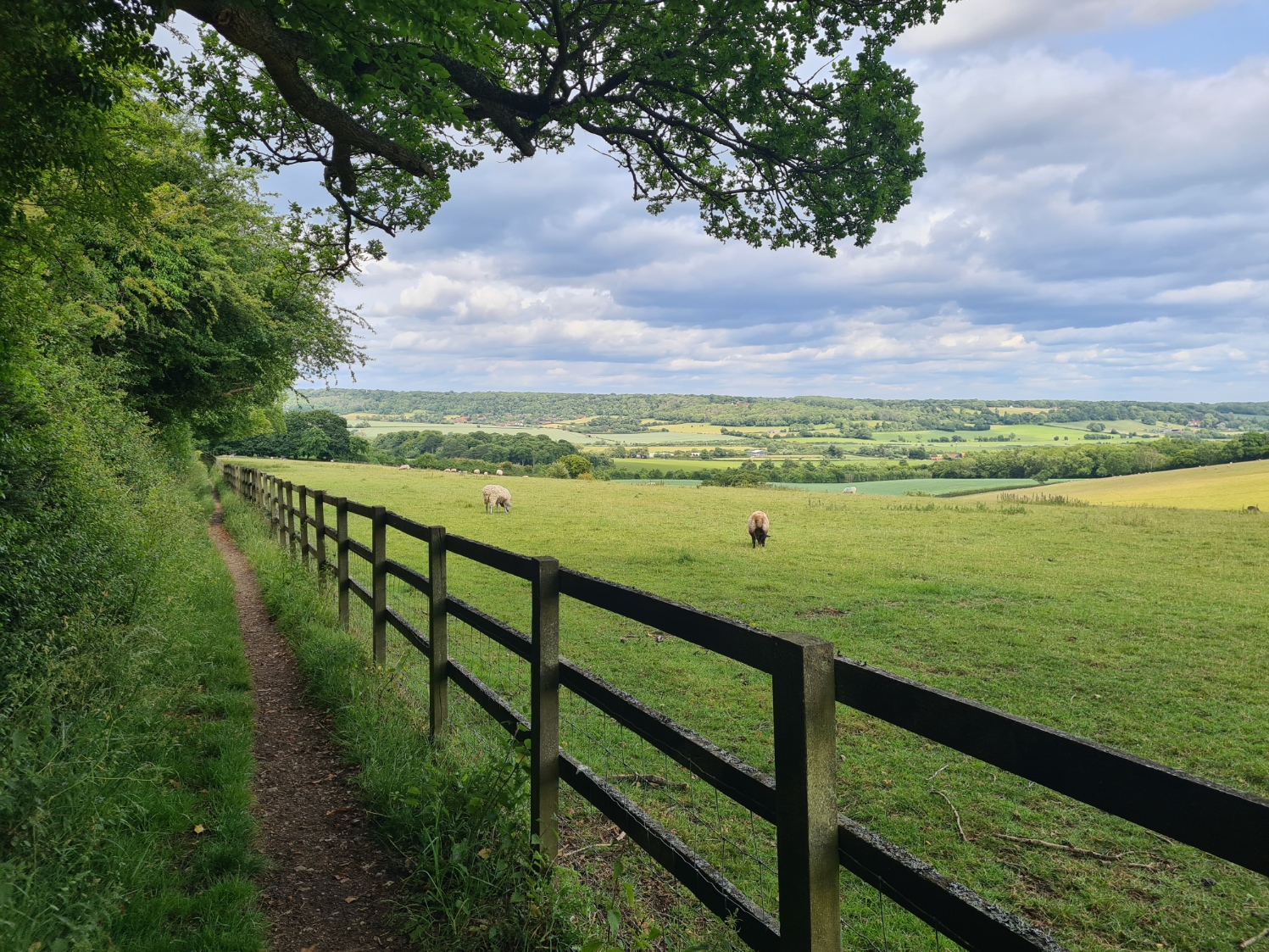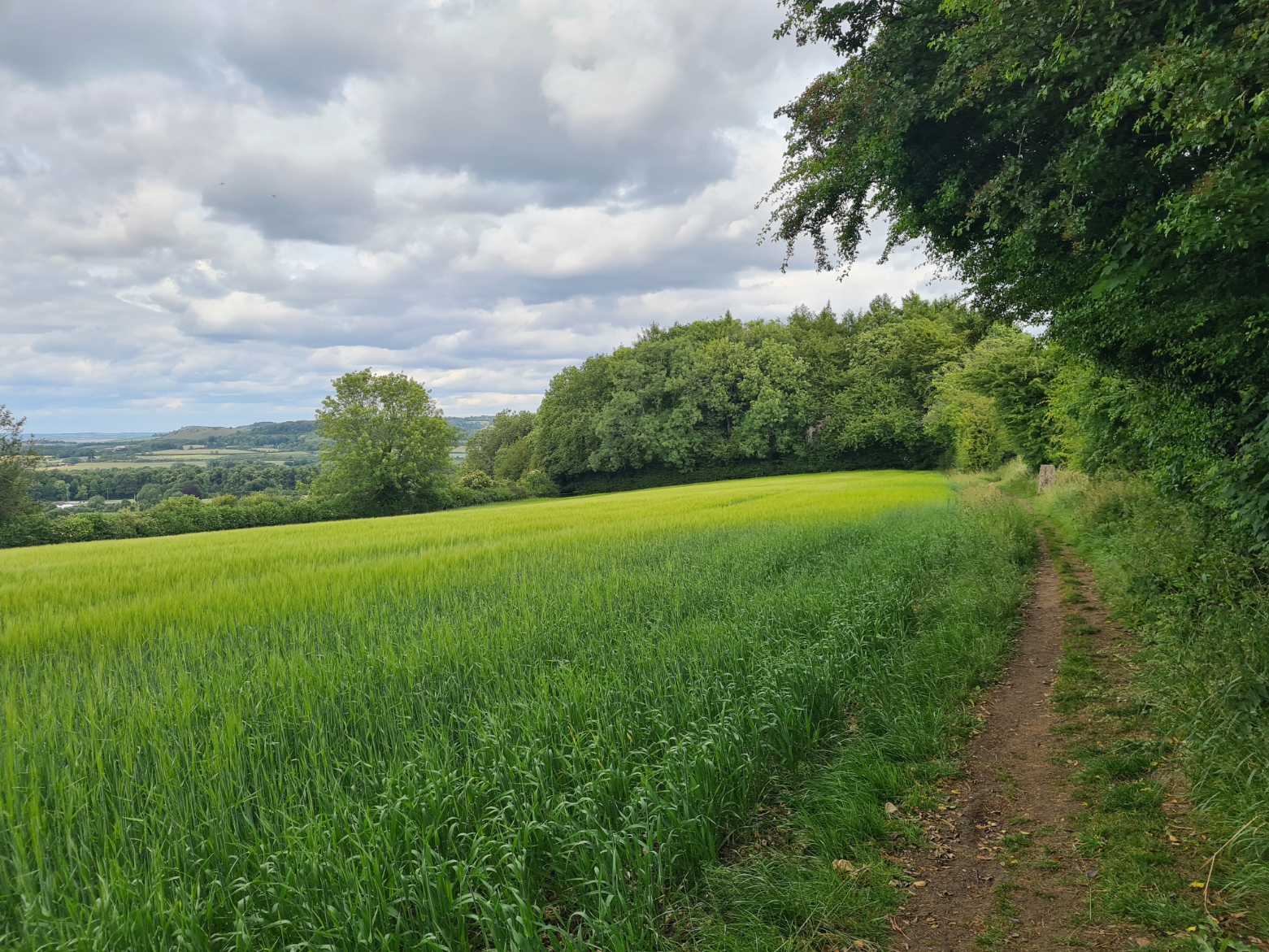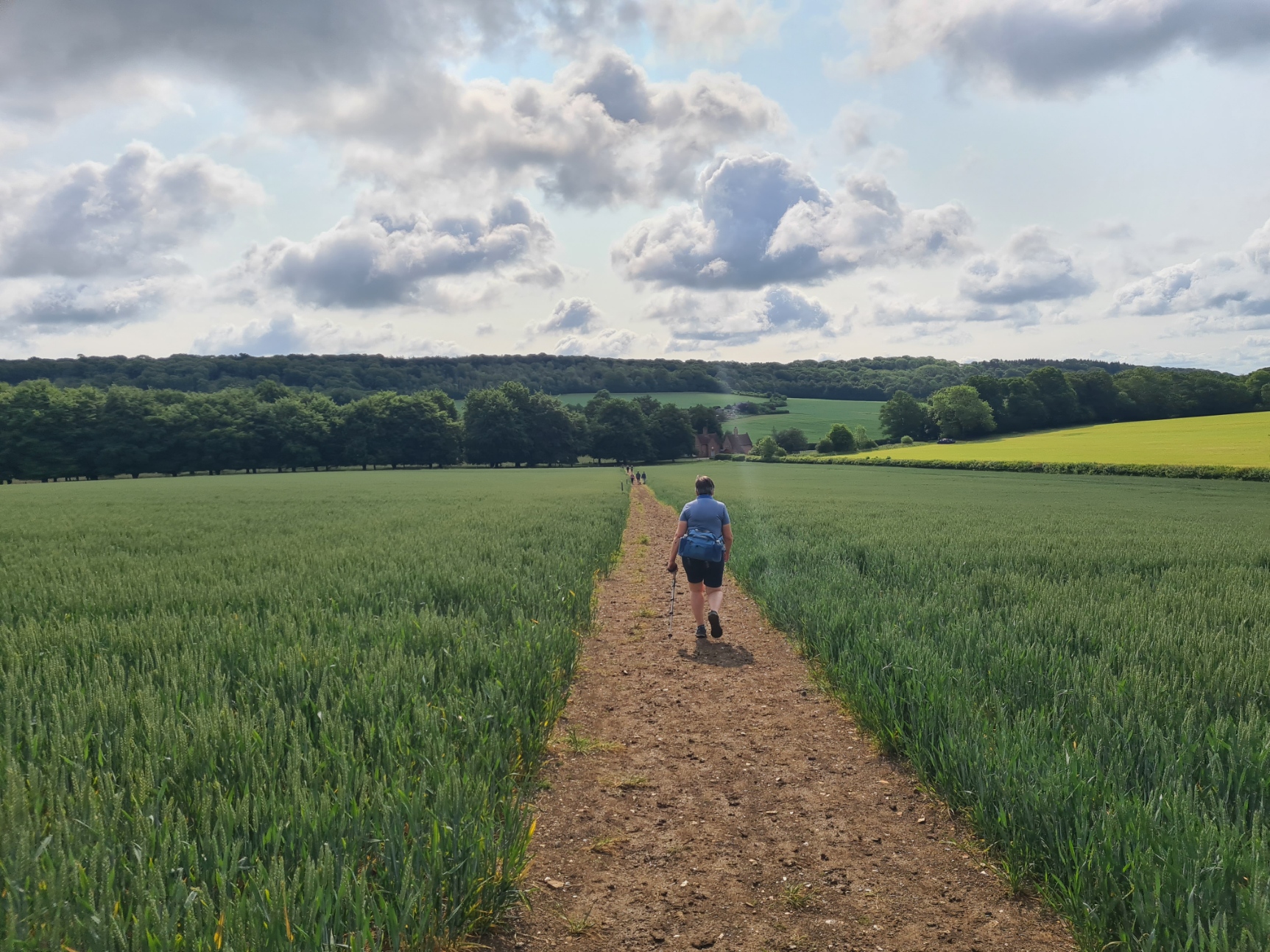 Handily, and unexpectedly, the taxi dropped us not at the Bell pub, where we had been picked up yesterday, but immediately at the point where we had left the Ridgeway. Waving our driver off, we were immediately on to a surfaced path, obviously popular with runners as quite a few passed us. A little further on, just past the entrance to a school, one dog walker watched as his dog crapped in the middle of the footpath, before ignoring it and walking on. I challenged him and there was a brief exchange of words that ended with him setting his dog on us. The little snapping snarling mutt was promptly called away when I raised both walking pole and voice. I hadn’t sworn, hadn’t been rude, just spoke to him with admonishment. It was a silly little altercation that shouldn’t have happened.