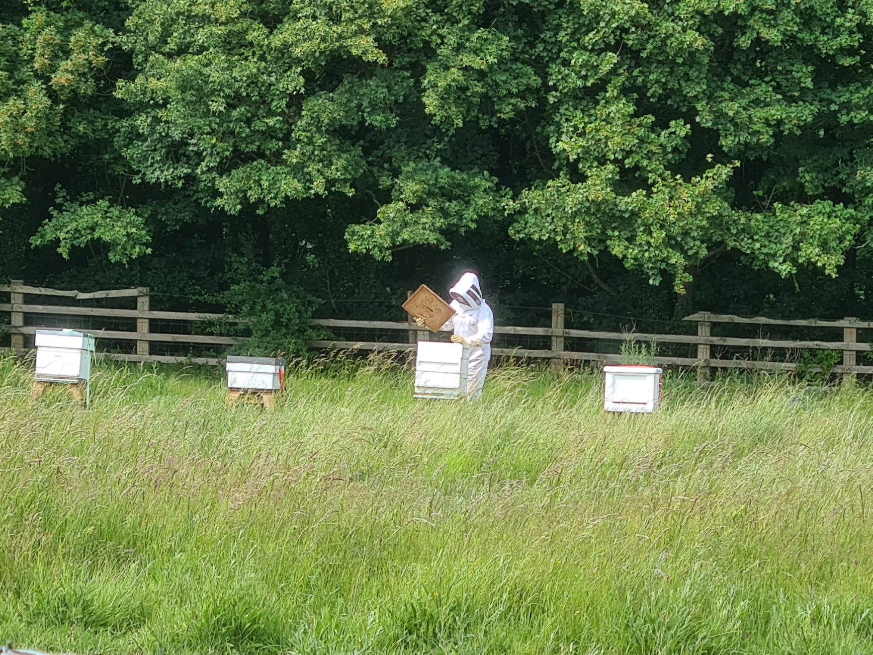 The bridge across the A41 was fine but after again dropping down the contours, and pausing to watch a beekeeper going about his business at a long line of hives, we had to cross the A4521 and its hurtling traffic. This road follows the line of the old Roman Akeman Street.