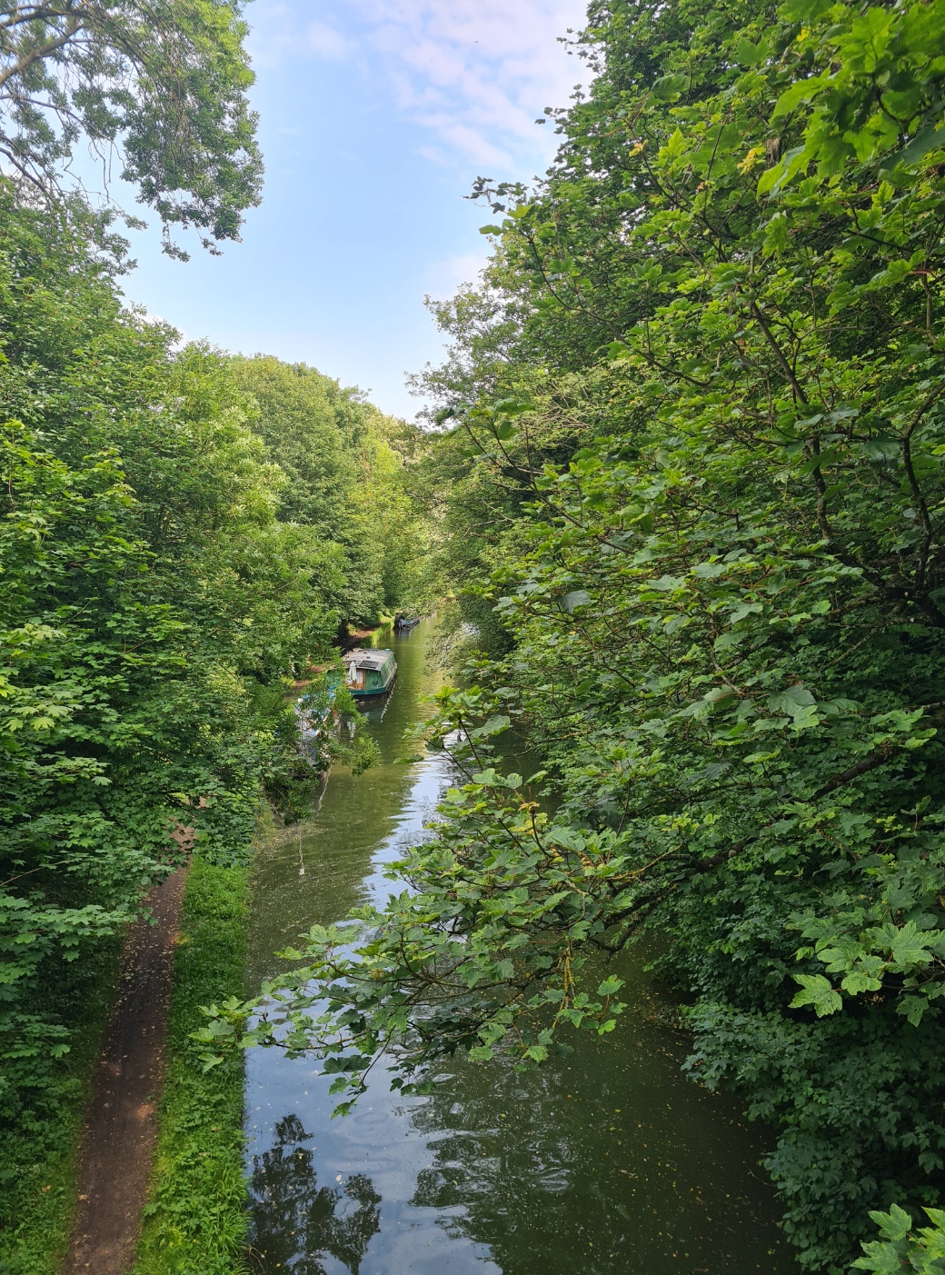Still alive, just, we now had an enclosed path that took us down to a lane that we followed for a short distance before a turn and cross over the Grand Union Canal. It would have been easy not to have even noticed the canal below us if it were not for the map. I walked this 147 mile canal from London to Birmingham as an eventful training walk once.