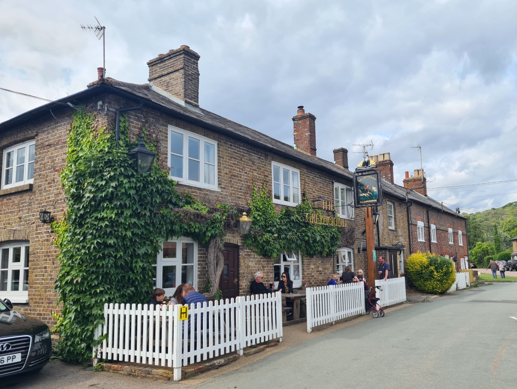 The Ridgeway then passed Tring railway station and we were now probably no more than three or four miles from the end of the Ridgeway. But that very short section was tomorrow’s walk. Today, we are staying at the village of Aldbury. So a little further on we turned off onto the Hertfordshire Way that led us via a dog-leg straight down toward the village church. From there it was a very short walk to tonight’s accommodation, the picturesque Greyhound pub.