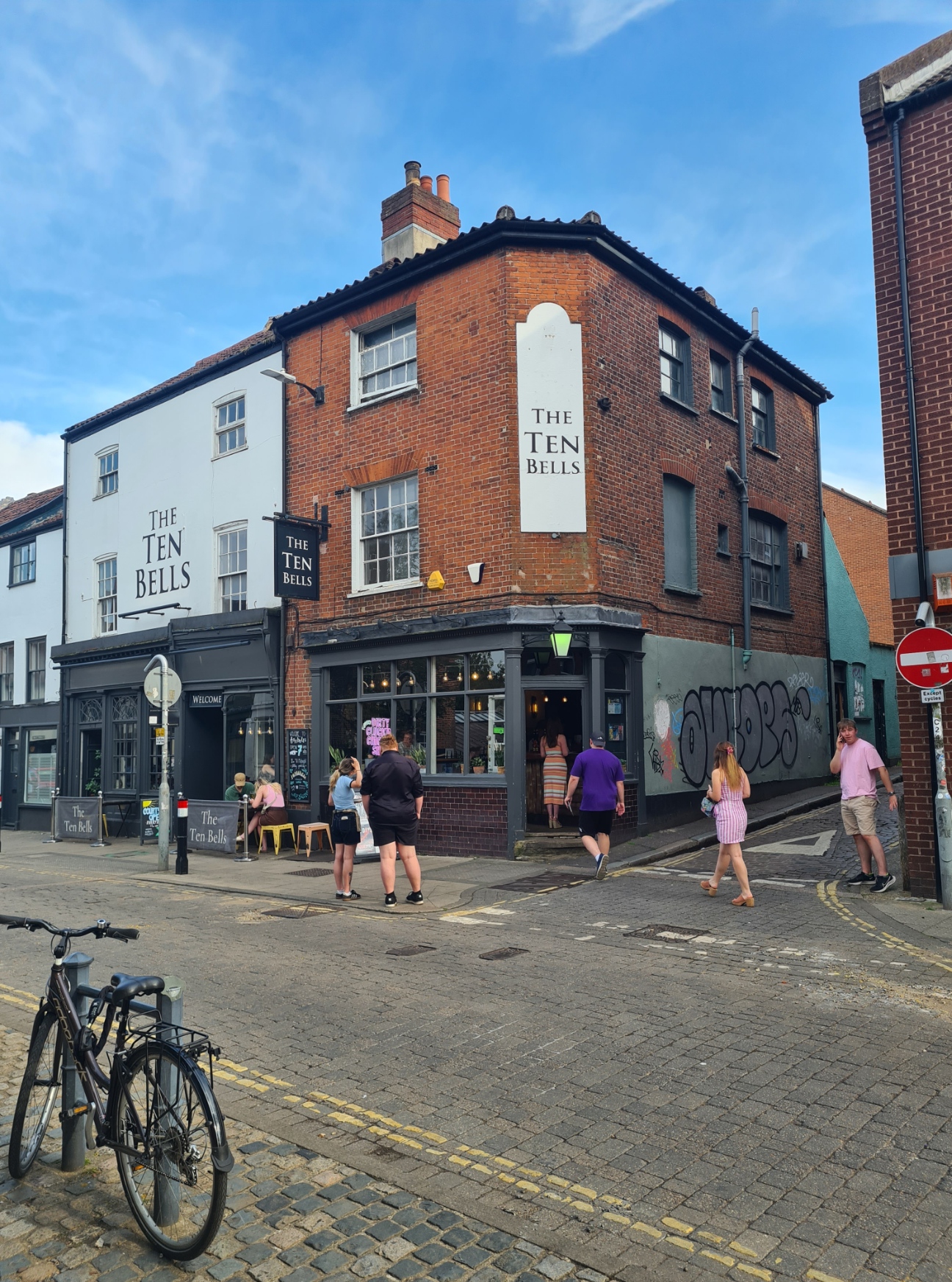 The up-market Ten Bells is a 17th century city corner pub, in St Benedicts Street, and is now a popular, laid back but stylish place. Looking at it from the outside it is all too apparent how the original public house has been twice extended into the buildings next door. There is an on-site distillery, producing gin, and I dare say many of the clientele are after cocktails, or alternatively, the craft beers on offer, but they also serve a rotating selection of usually four cask beers.