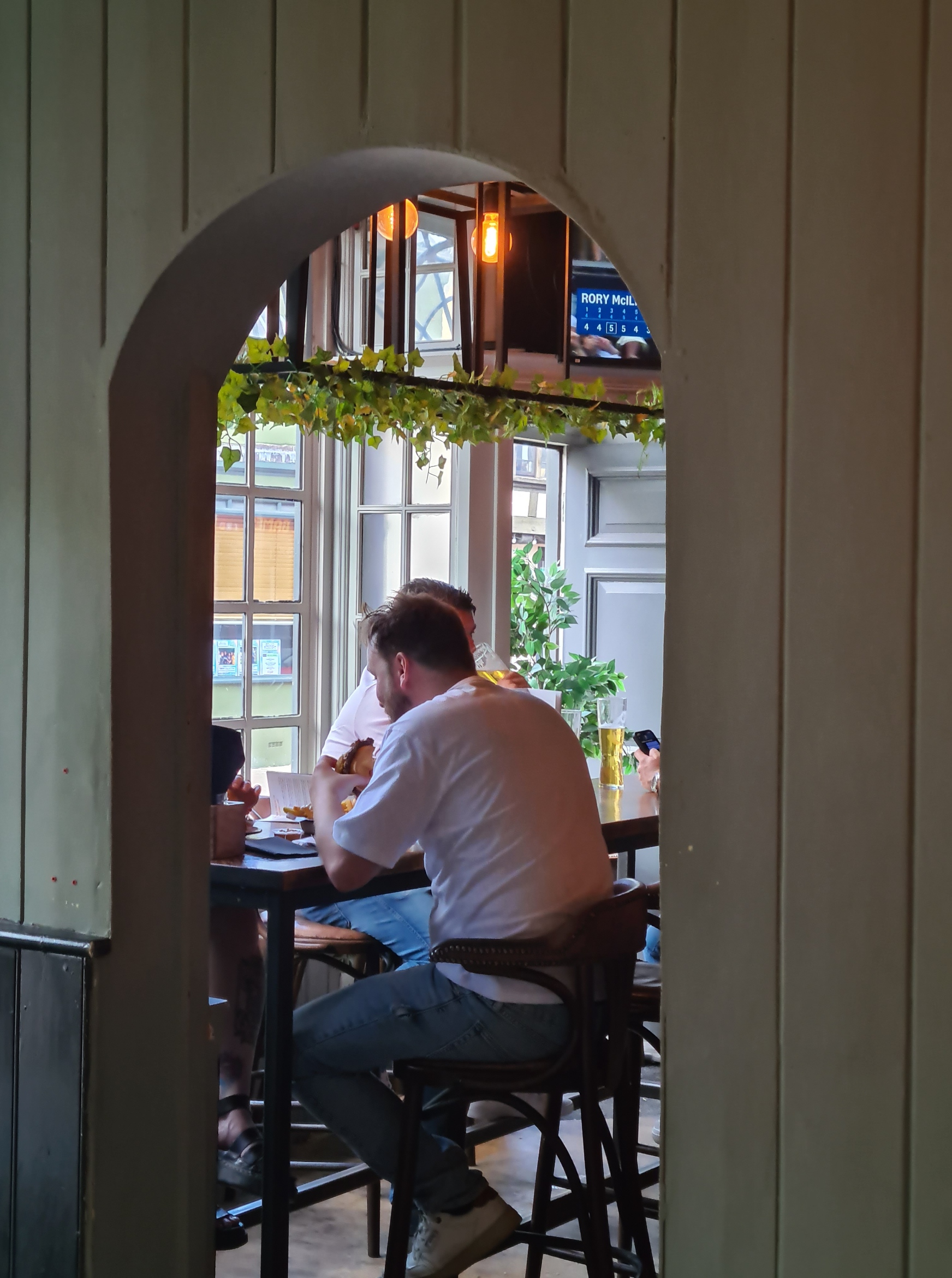 The staff couldn’t have been more pleasant, including the natty bouncer. While beer was very much on the agenda, more importantly, at last we were able to get some food. It felt a long time since those pork pies back at the Beehive. A very good bacon cheeseburger with fries accompanied my pint. It was calorie rich, filling, and very satisfying. Lining the stomach and preparing me for the remainder of this trail. An army marches on its stomach you know.
