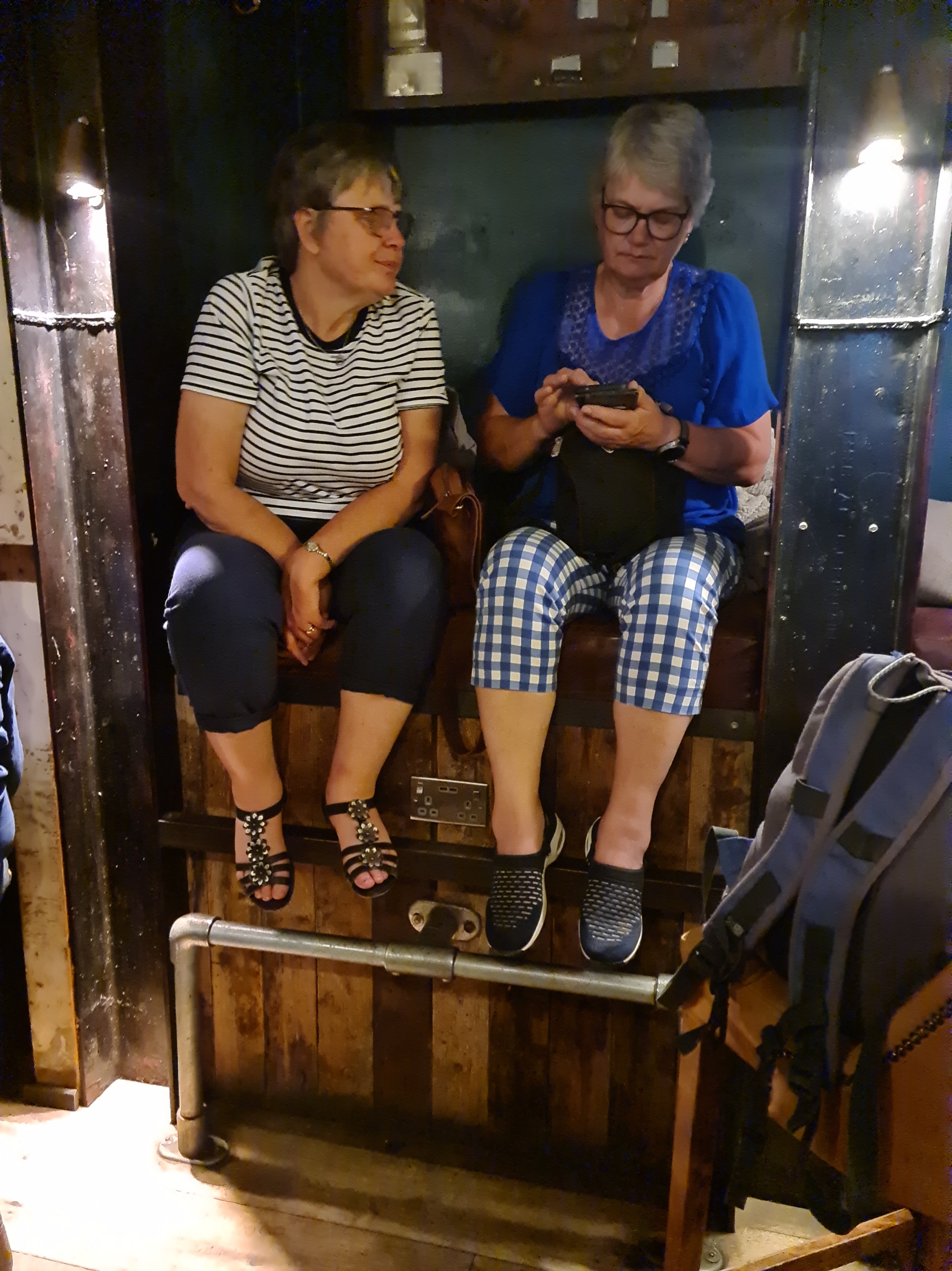 Unsurprising, given its location, we found this to be another popular place. There were quite a few people sitting at the tables outside, enjoying the fine early evening and we wondered how busy it would be inside. But there was almost no one sitting inside. I received the rudest welcome in a long time when I approached the bar. Perhaps Adam had endured a long day, perhaps he was fed up with foolish questions, but he took immediate offence to my asking if they had any real ale on. Nope, this is strictly keg and bottle ‘craft’ ales. He mellowed eventually, and we even managed to get our commemorative pin badges from him when obtaining our stamps in our programmes.
