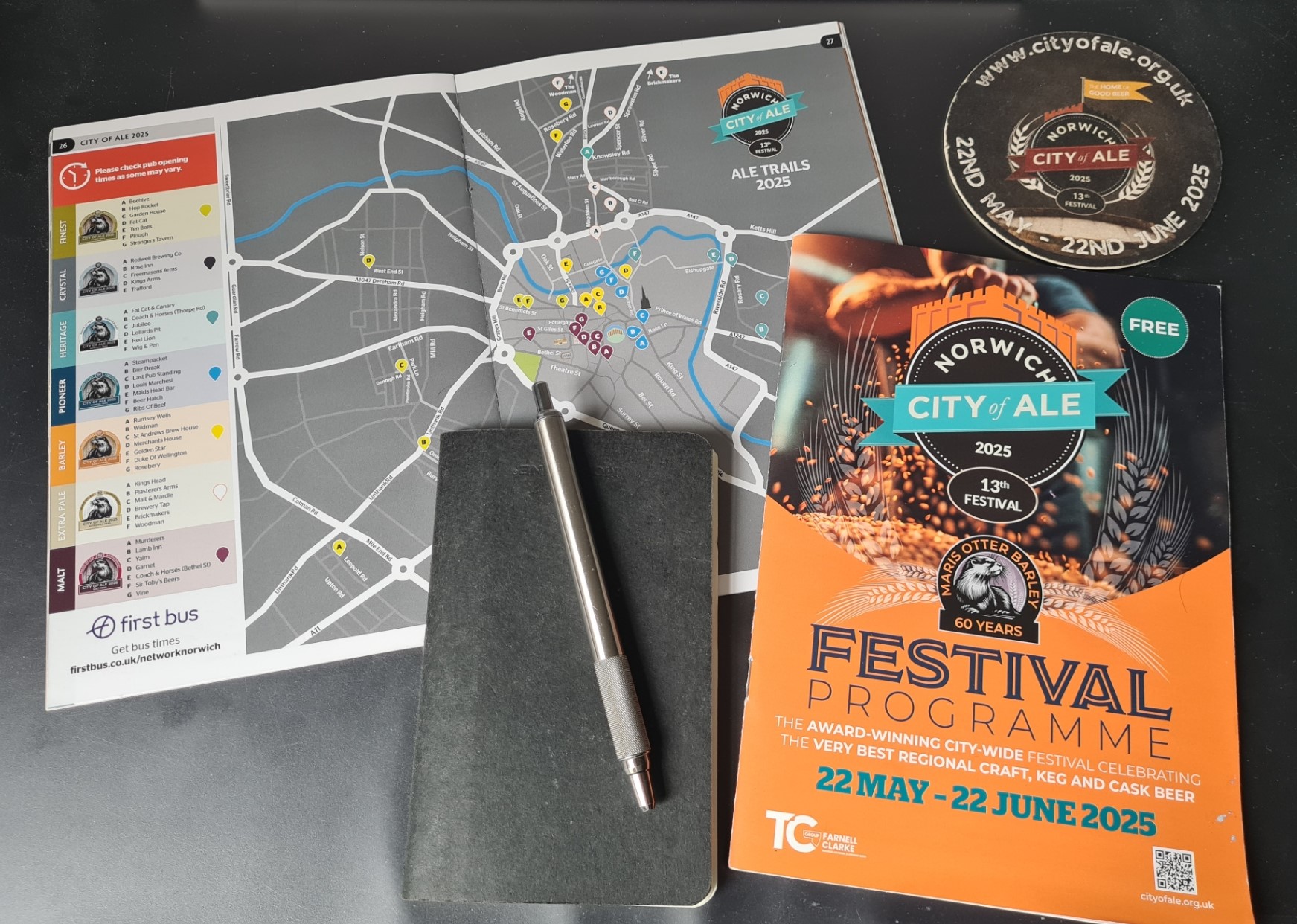 We were actually following one of the suggested beer trails pulled together for the annual city-wide Norwich City of Ale festival that celebrates regional craft, keg and cask beer in the Norwich region. The 13th of these ‘events’ took place over 2025. I have visited in previous years (2016 and 2019) to also walk a handful of the trails and there is usually a little variety between years, some trails featuring the same pubs, other trails might occasionally have new pubs included while others might drop out, with the various trails being altered slightly to reflect this.