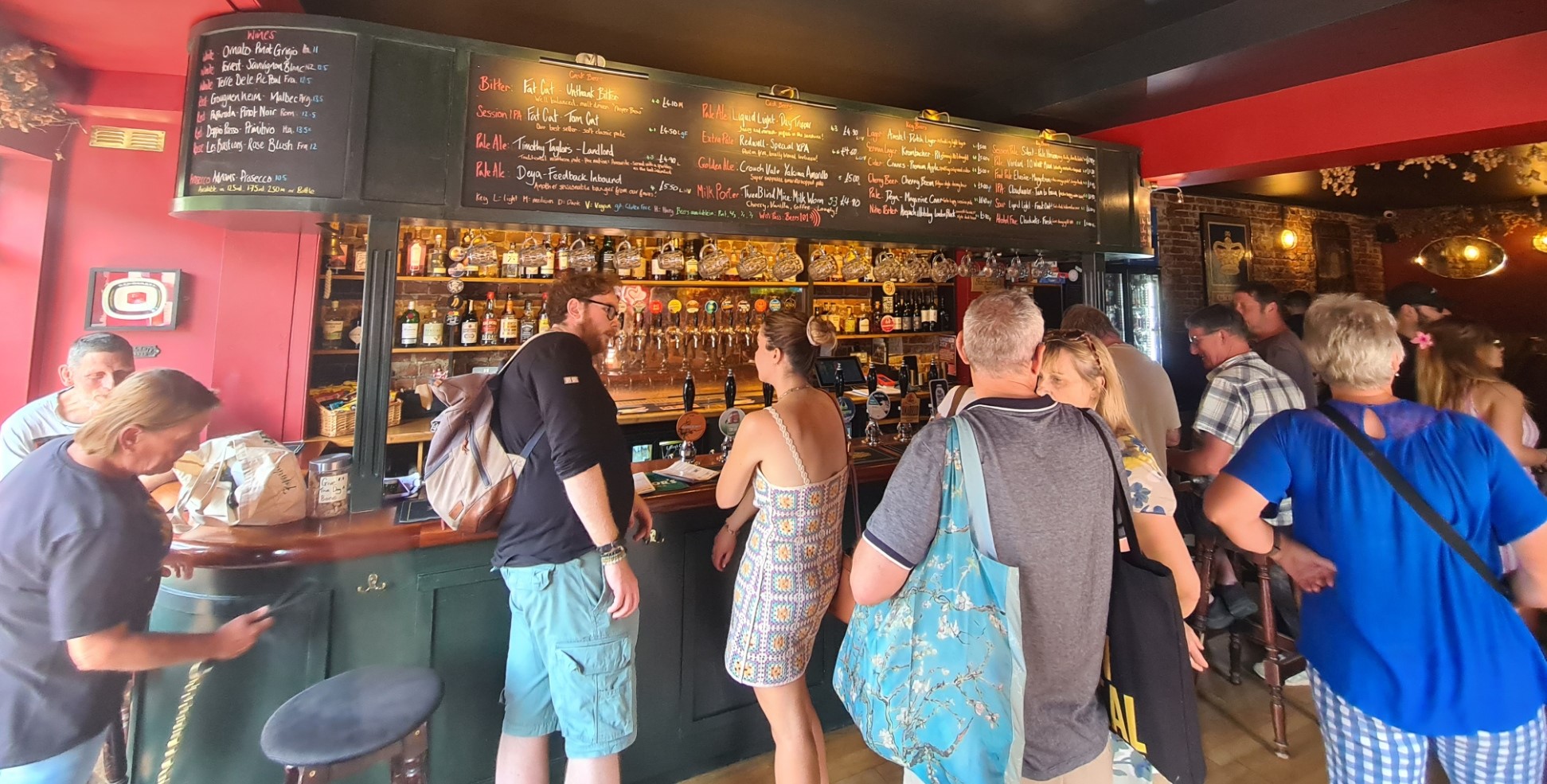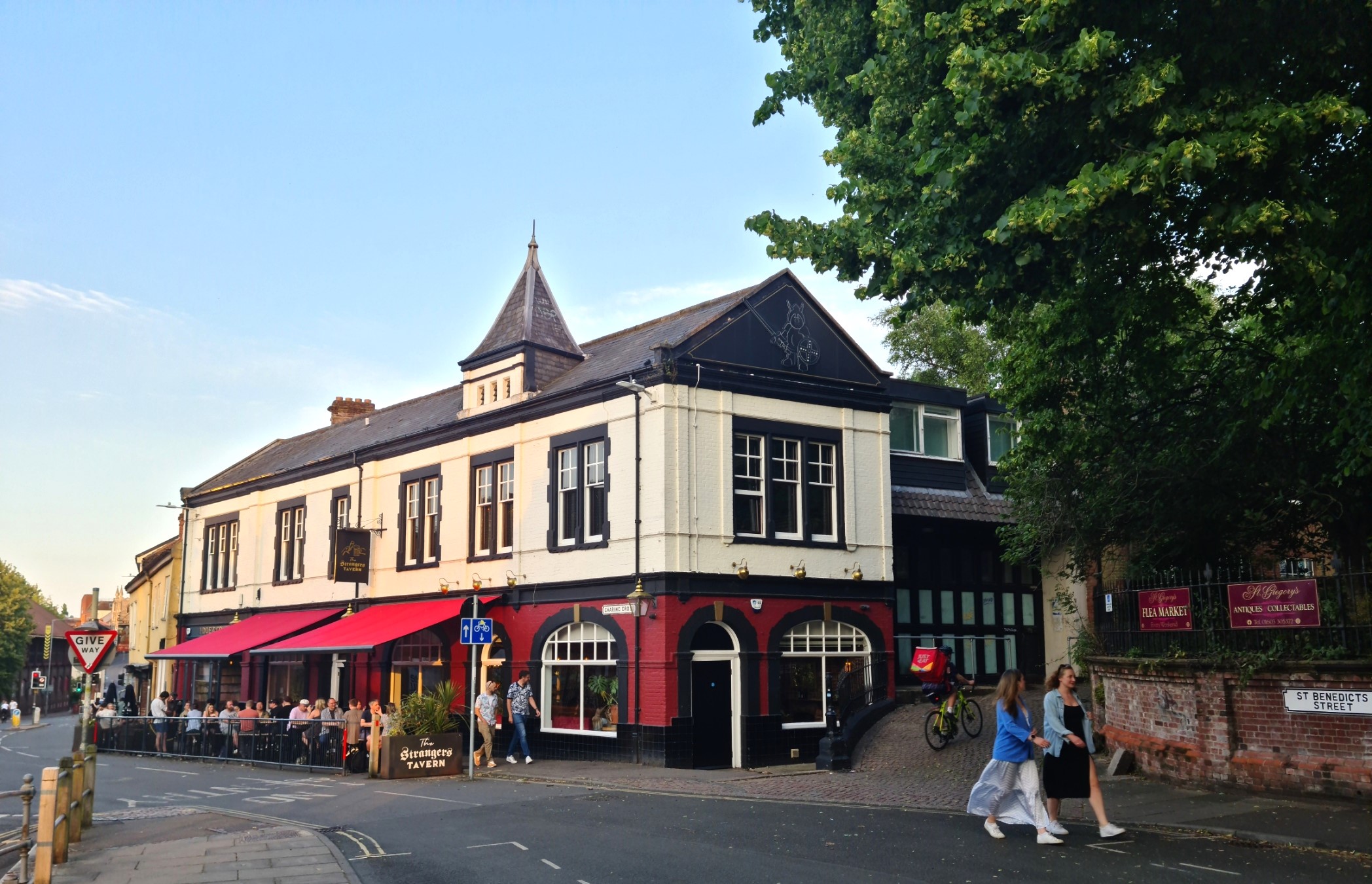 Renamed and reopened in 2019, the Strangers Tavern in Charing Cross, is named after a group of 16th century Protestant refugees, called the Strangers, who settled in Norwich, having originally arrived from Flanders, in Belgium. This was the seventh and final pub on our trail.