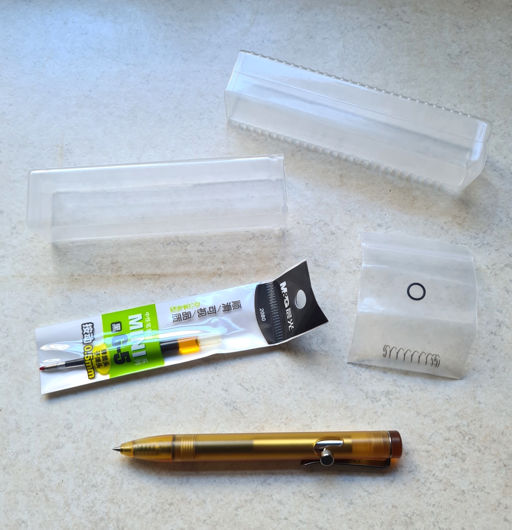 Advertised as the Ultem PEI Gel Ink EDC Bolt Pen with TI Pocket Clip, I purchased this pen via AliExpress for £19.93. The pen I purchased is produced in two lengths, ‘Short’ and ‘Long’, I have the short version. Like the Valyrian product above, the EDC Flashlight Store where I purchased it is simply an online store front for a pen made elsewhere by someone else. Possibly Shenzhen Siyuanweitong Technology Co, Ltd. As far as I can ascertain, the EDC Flashlight Store was established in either 2017, 2021 or 2024! You find these products sold by numerous outlets for varying prices. I have seen it also sold by EDC Gear as the LoneLabs Field Agent Ultem Pen, costing £45. It can be difficult to nail down information about Chinese stores and pen refills can be peculiar to China or Japan.