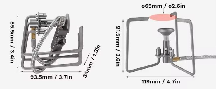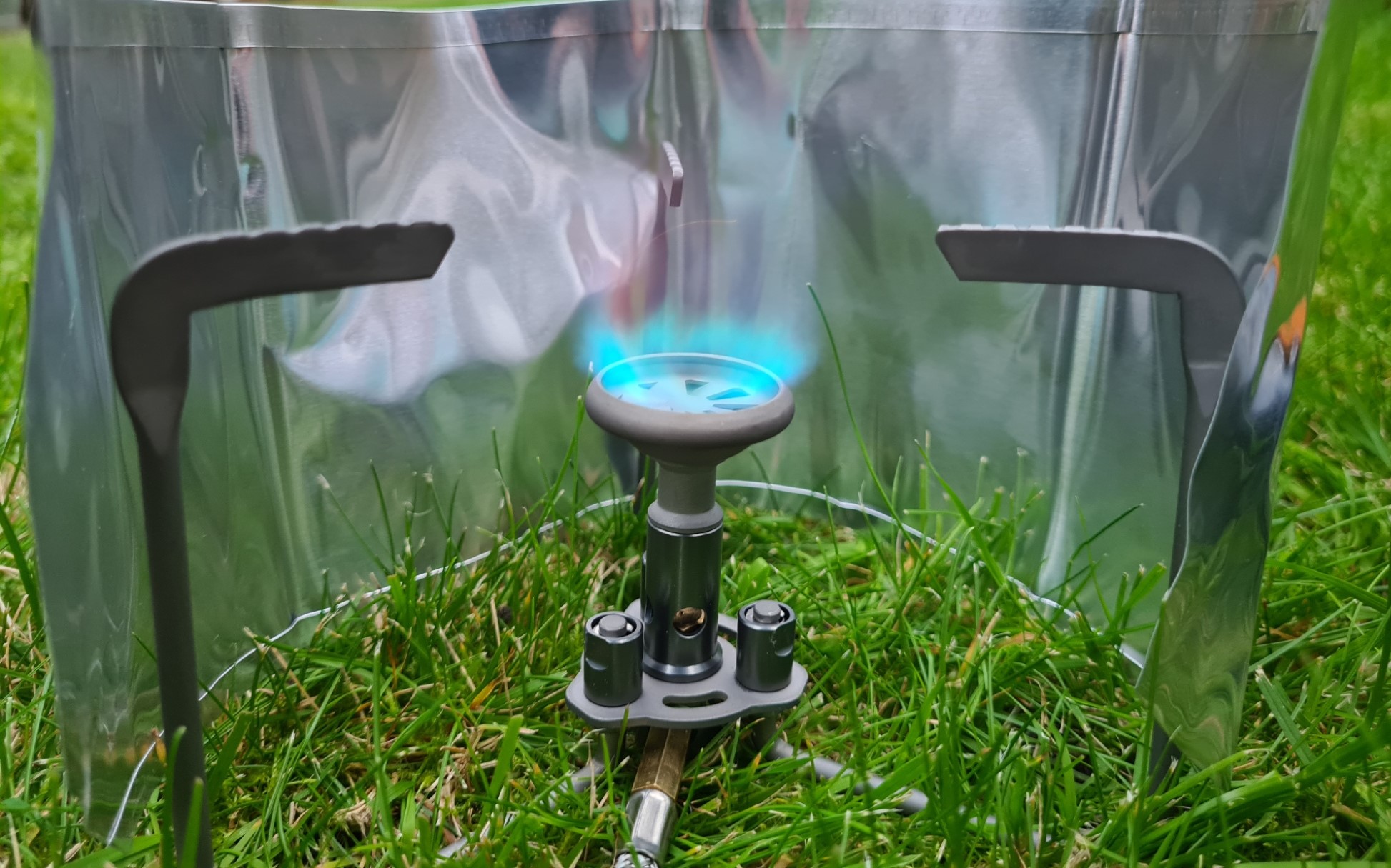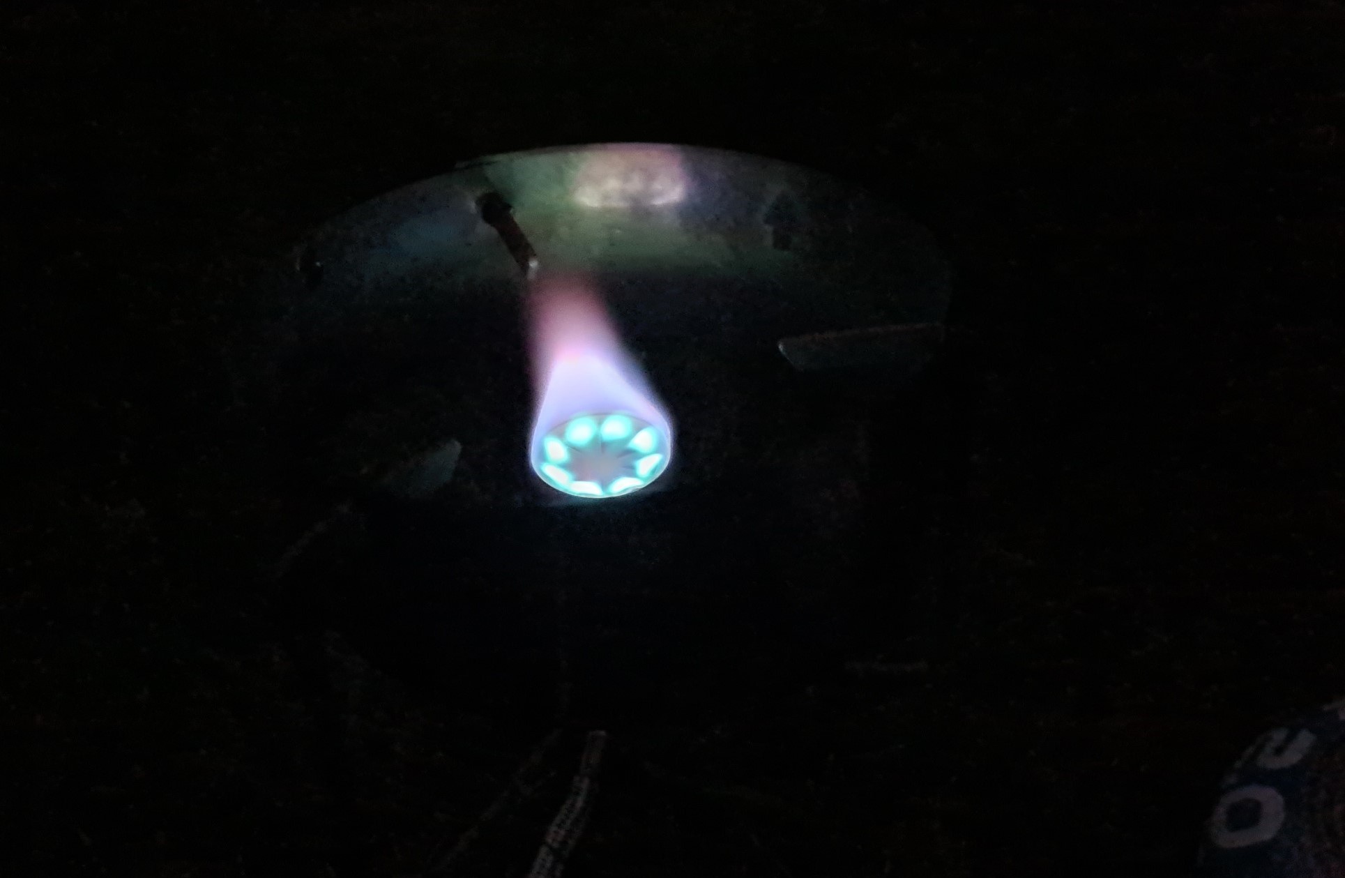 The 29mm diameter burner head design includes a lip around the circumference that offers a little protection from side breezes, helping prevent the flame from blowing out but offering little protection to the actual flame above the lip. This shares a design with Fire Maple’s Hornet II. Within this lip the stove has a small 21mm wide burner that creates a narrow flame pattern with recirculating vortex-style flame.