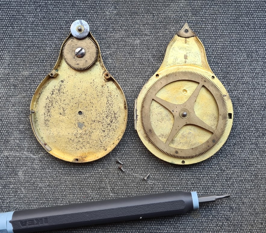Beyond the obvious change to the internal mechanisms and the addition of the totaliser, there is little difference in the case design between the two generations of Chartometer. It is only when they are compared side by side, that it is noticed that the small pointer ‘fin’, above the tracking wheel, has been thickened, presumably because the first generation fin was more easily bent.