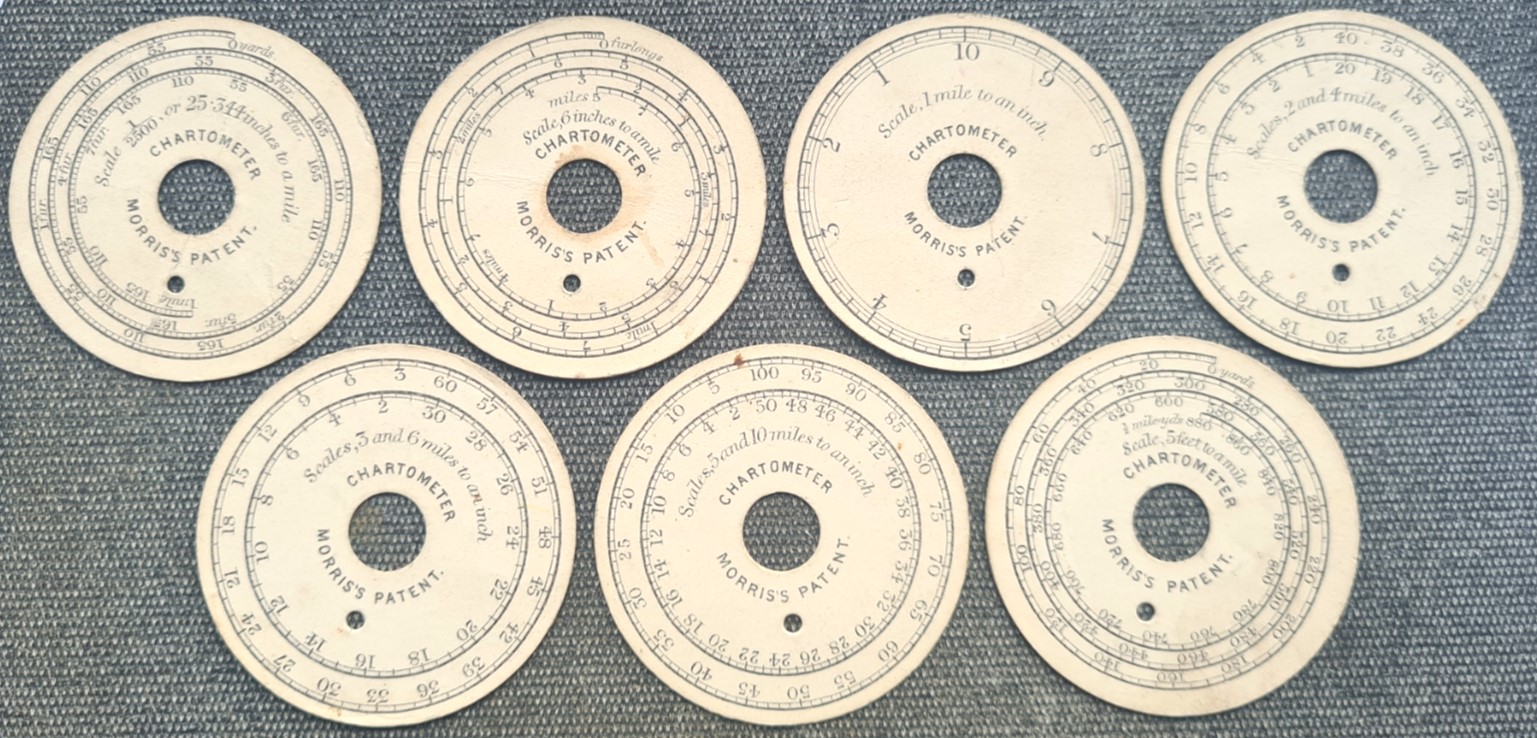 This example of Victorian engineering amply demonstrates the ingenuity of some individuals that helped shape and improve various engineering and surveying disciplines. The Patent Chartometer was invented, manufactured and sold by Edward Russell Morris, of the Morris Patents Engineering Works, High Street, Birmingham, England. It is capable of measuring a wide range of scales due to interchangeable card dials. Not content with this, Morris went on to improve the design, including a totaliser in a second generation, and reducing the size of the entire instrument over the years, finally creating the basic model that many other manufacturers went on to copy and refine themselves.