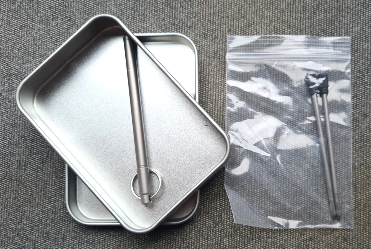 As always, the description of this pen is all-encompassing: Mini Titanium Pen Keychain Signing Pen Light-Weight Writing Pens EDC Carrying Tools Portable Outdoor Self Defense Glass Breaker