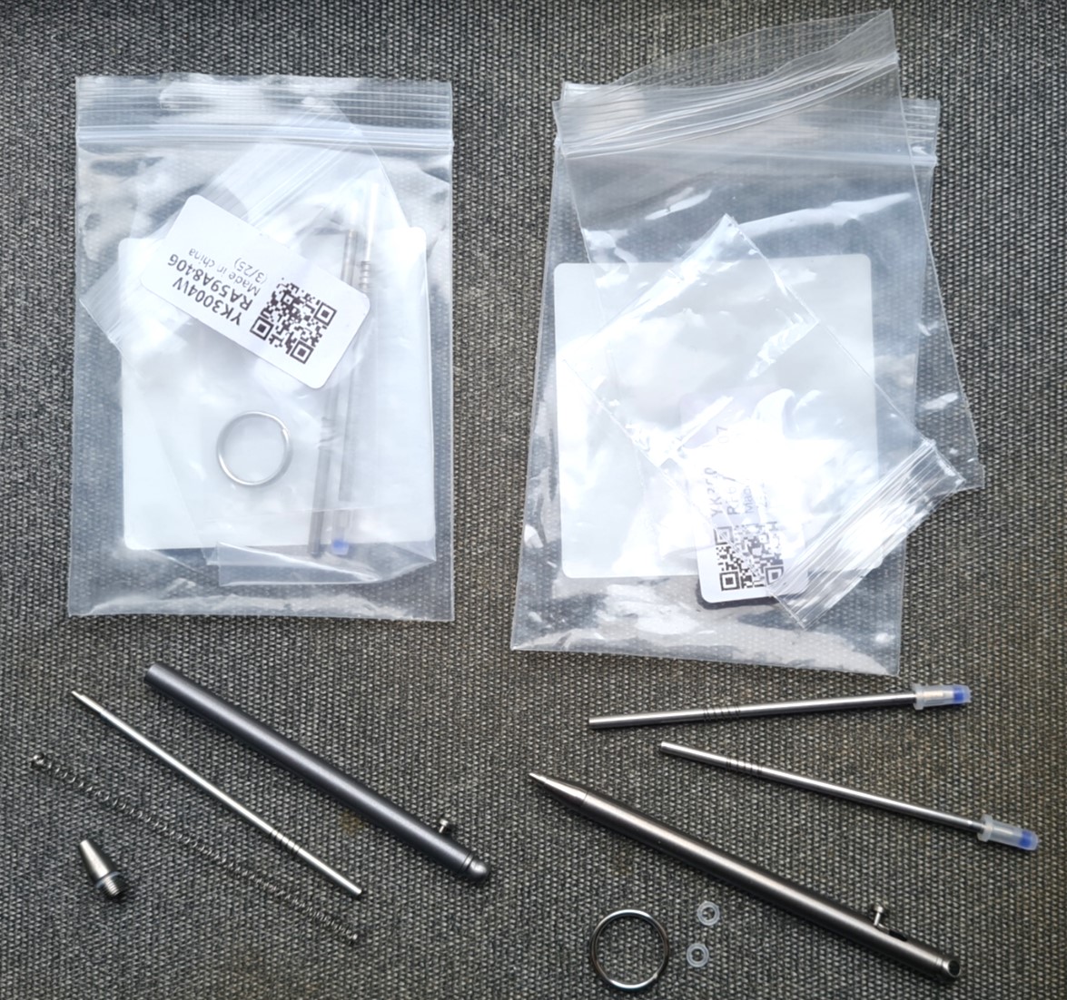 The two bolt action ballpoint pens have equally as long names: Pure Titanium Mini Compact Bolt Pen Portable Keychain Pen Portable Travel Metal Ballpoint Pen Signing Party Gifts for Guests