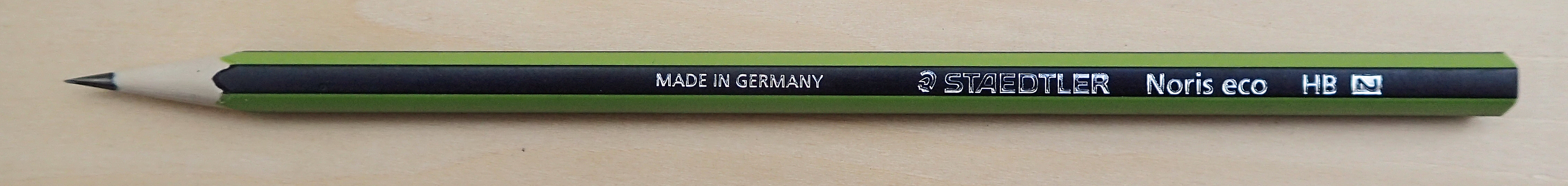 The German made Staedtler Noris eco is a slightly strange pencil. By no means a favourite of mine, the Wopex casing is a wood-plastic composite and the graphite used is a particularly tough product. What this gives you is a tough offering that will withstand knocks on the trail better. For those gram counters out there, the pencil shown above weighs 8.2g against the similar sized Faber Castell 9000 pencil which comes in at just 3.2g
