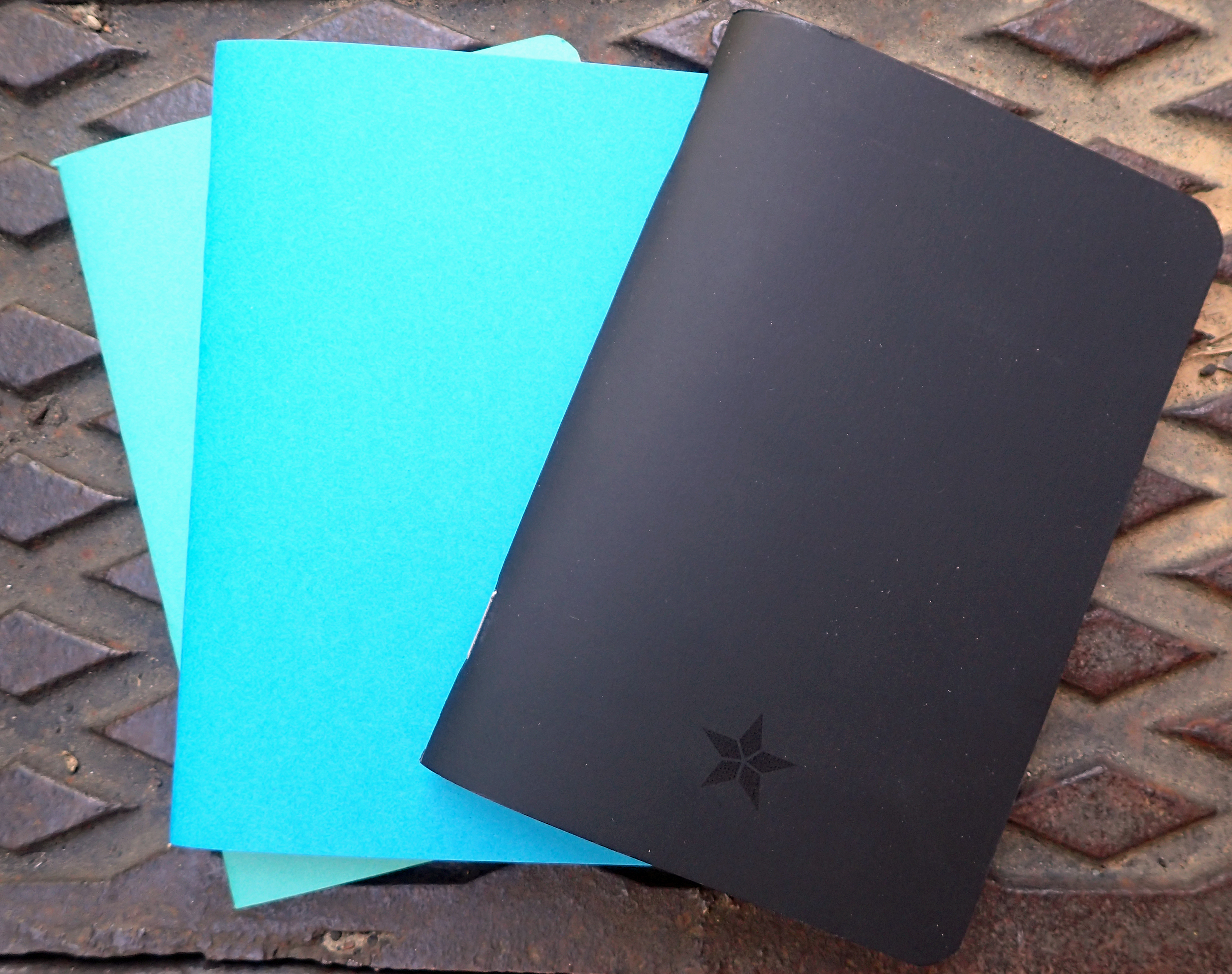 Two options of softback books with slightly wider pages. The two on the left are Sketch & Note booklets from German company Hahnemühle. They measure 105mm x 148mm, have stitched binding and 40 125gsm white pages. The booklet on the right is a rare breed and fairly difficult to find. The UK made Traveller’s Notebook from Darkstar has 40 100gsm pages. The stapled pages in these well priced notebooks are less to my liking. The creamy plain pages measure 98-100mm x 148mm. Feathering or bleed through is seldom a problem with either of these booklets