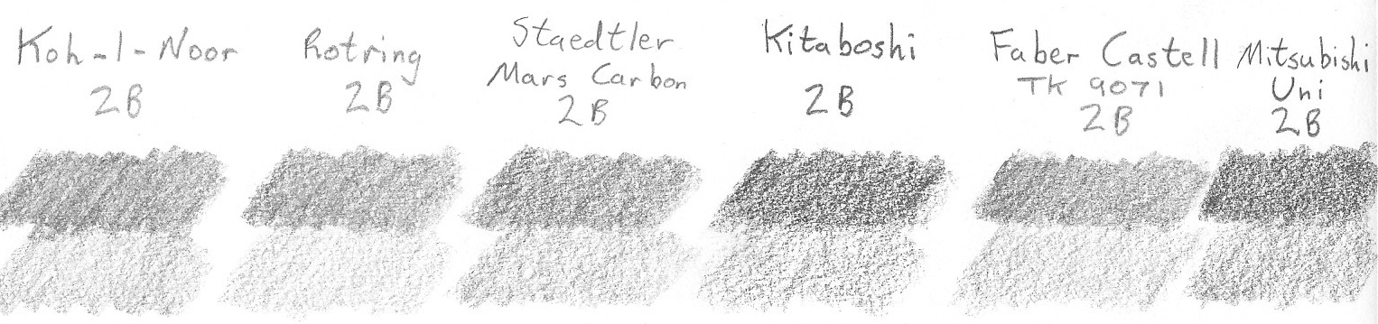 I have a small sample from my favoured suppliers but as the BBC would say in the interests of impartiality- “other leads are available”. The ones I show here are more than sufficient to my needs. The one available from Kitaboshi is an especially dark offering, even darker than the Mars Carbon from Staedtler. Other favourites of mine amongst those shown are the Koh-I-Noor and Faber Castell leads as they are mid-grade, consistent and exhibit little grittiness. But in truth, they are all good products. The lead that I most frequently take on my travels is the Mitsubishi Uni 2mm graphite. I just wish this excellent lead was more easily found.