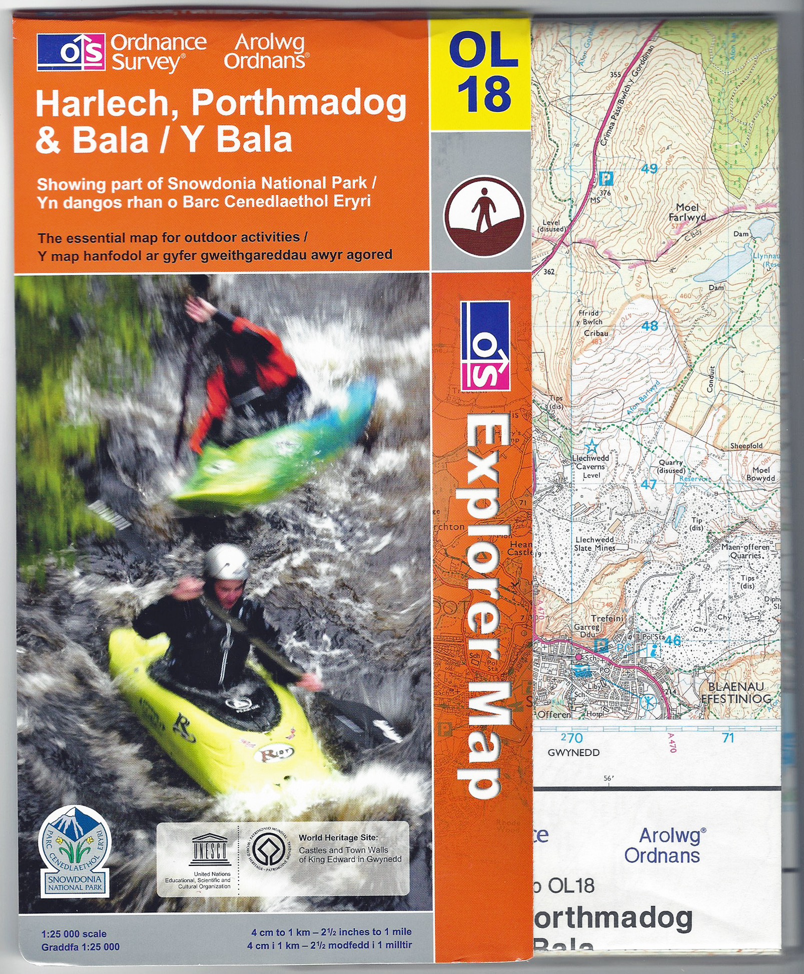 Tuff Map- Ordnance Survey. OL18. Harlech, Porthmadog & Bala/Y Bala. 1: 25 000. Published 2009. Sleeve separate