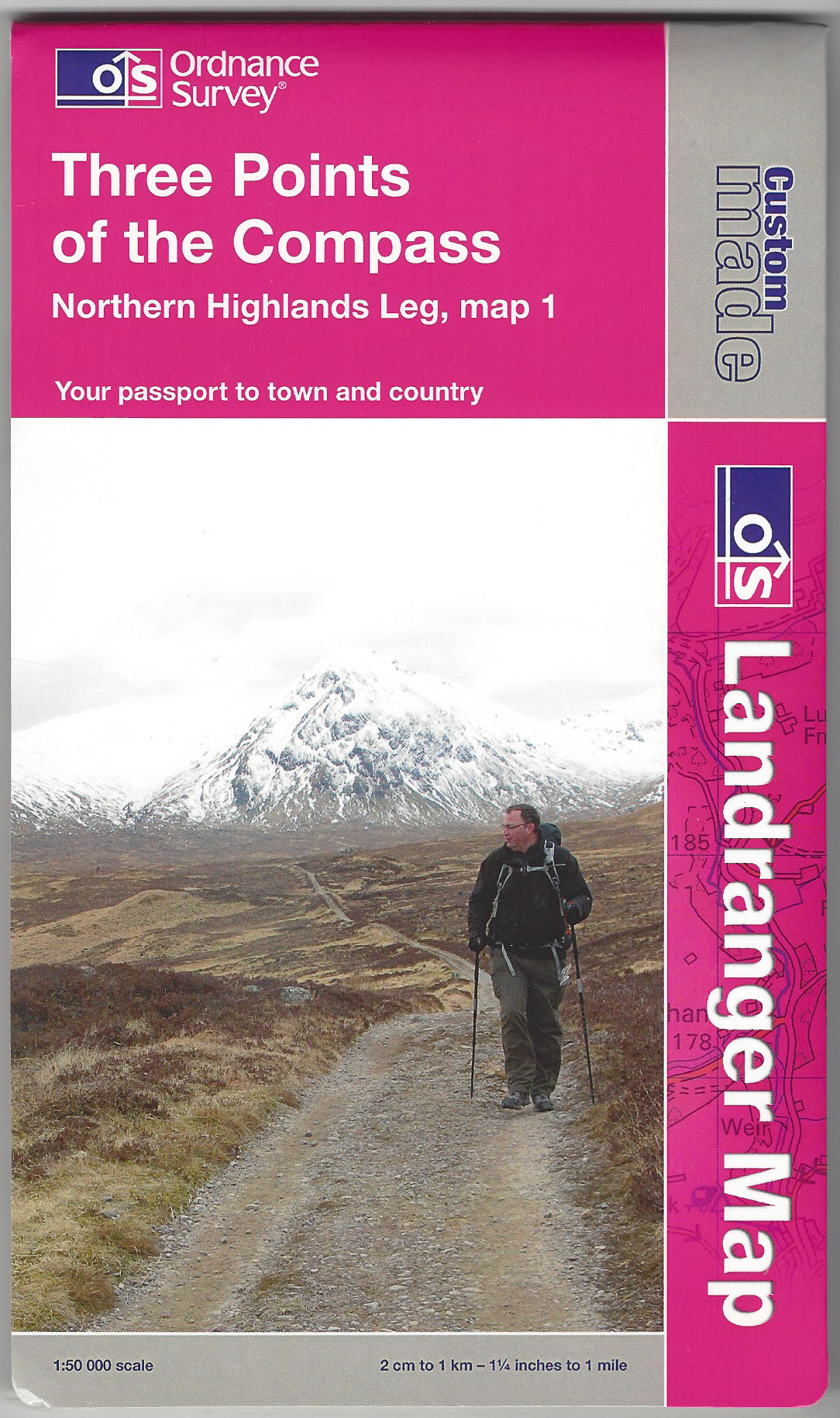 It was only very recently that I began to make use of Ordnance Survey’s custom map facility. Going on-line, I input my desired central map coordinates and, because it is the wilds of Scotland, chose 1:50 000 scale Landranger sheets. I am vain enough to have put myself on the cover. I chose an image I had of Rannock Moor for its composition, perhaps Knoydart or even Torridon may have been more suitable. It matters not to me. These particular maps, and six others, are for my Three Points of the Compass walk in 2018. By selecting my own series I can use less maps and consequent less weight and bulk to cover the areas I will be walking through. I much preferred the original cover design text layout, but with their rebrand, they also changed the cover layout, most obviously with the larger cover image. Most annoying to me as someone who stores my maps on a bookshelf, selecting them by spine name, is the change to title layout. The custom name on the spine of those I ordered in 2014 is the title I selected. Now it is simply a ‘CUSTOM MADE’ legend on the spine. Of no use to me at all for indexing and easy selection. Despite my emailed protestations, O.S. simply informed me they had ‘noted my comment‘. If ordering such maps yourself, be aware that the published date, or any other date for that matter, does not appear anywhere on the product. However the degree of magnetic declination does.