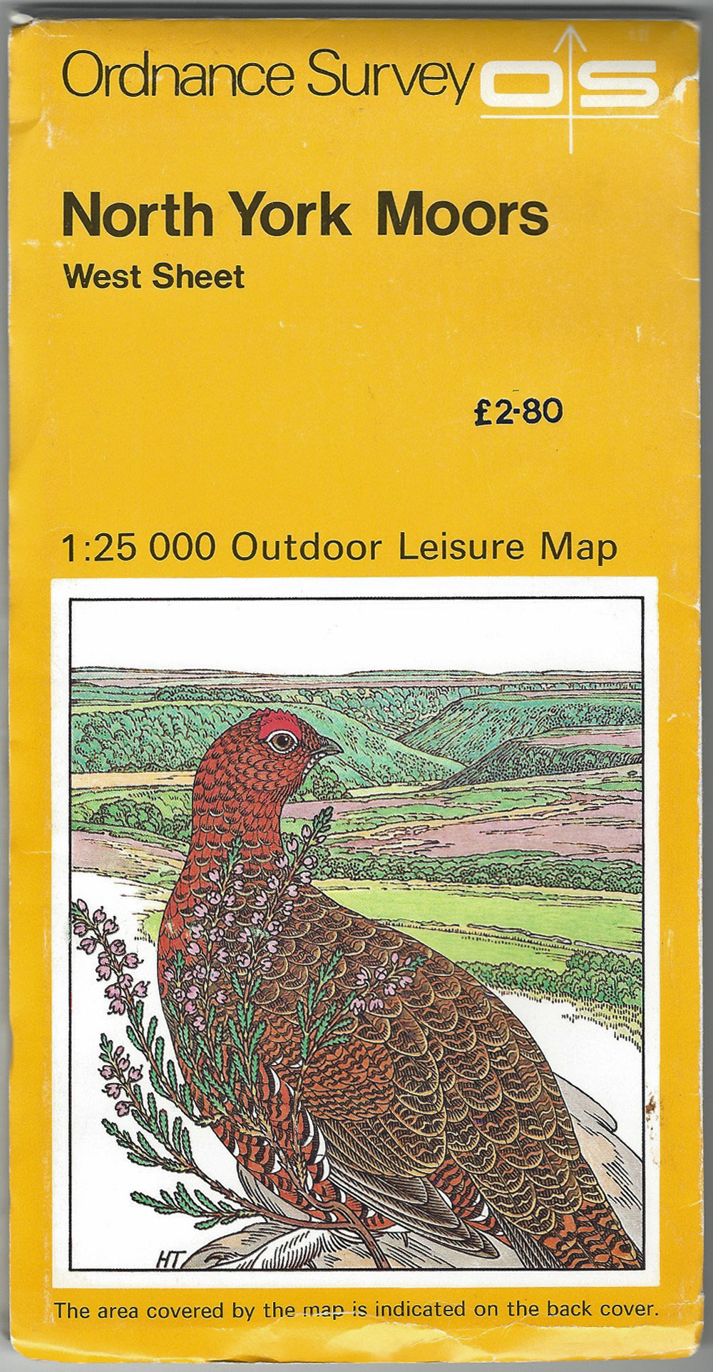 The early series of 1:25 000 Outdoor Leisure sheets from Ordnance Survey had a quite charming set of covers, each with a bird, flower and background design particular to the area covered by the map. The artist was Harry Titcombe, an employee within the Central Office of Information who was also an artist and ornithologist. As an amateur naturalist with a particular fondness for avian life, these covers struck a chord with me. The Red Grouse on the cover of the North York Moors sheets was the bird that would frequently give me heart failure as it exploded from cover as I bashed my way through the heather (ling) on those moorland hills which also featured on the cover panel.