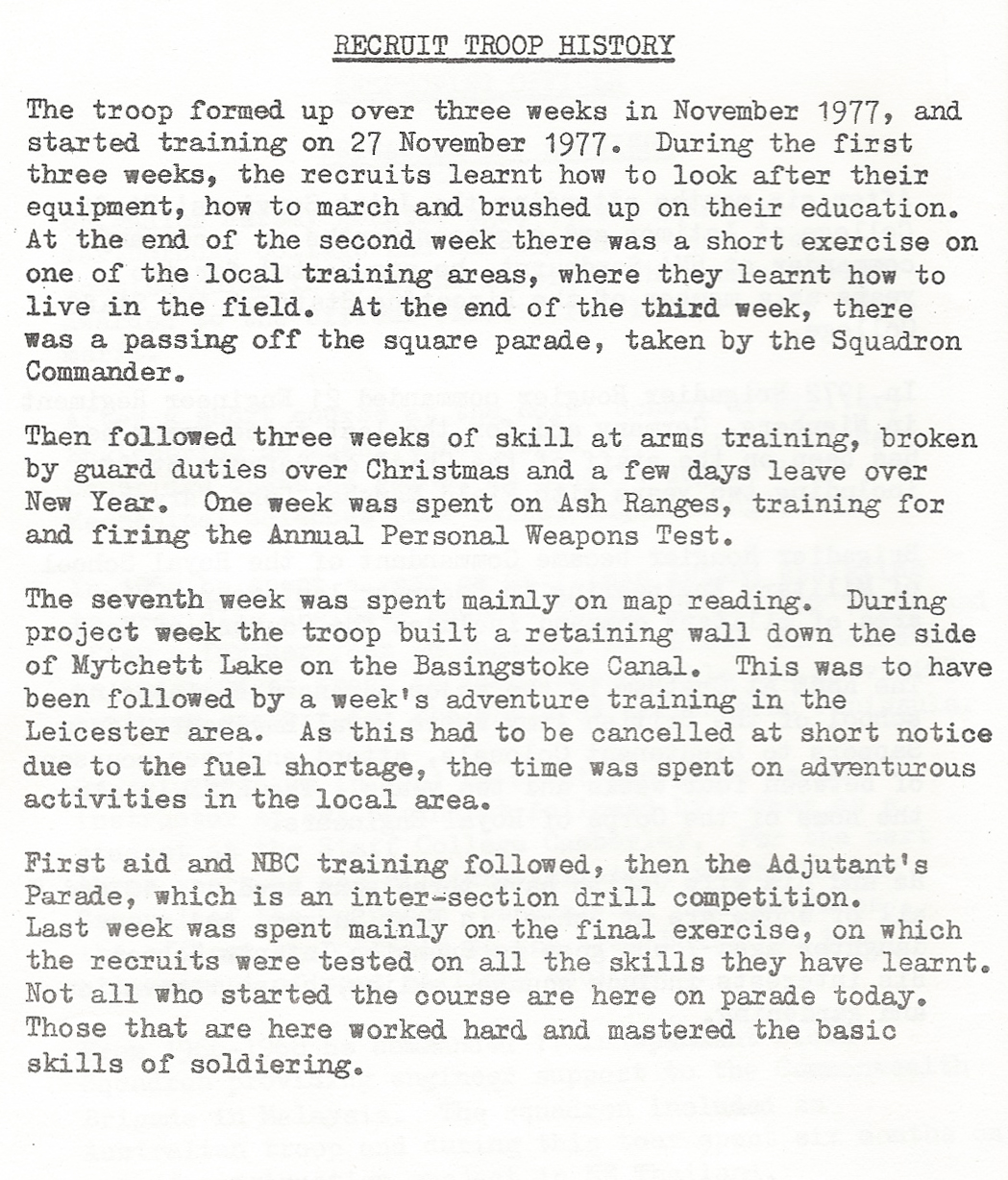 The Basic Training in soldiering that I received as part of 77/13 Recruit Troop. 28 Training Squadron, Royal Engineers. Training in map reading took place on week seven of the three month course