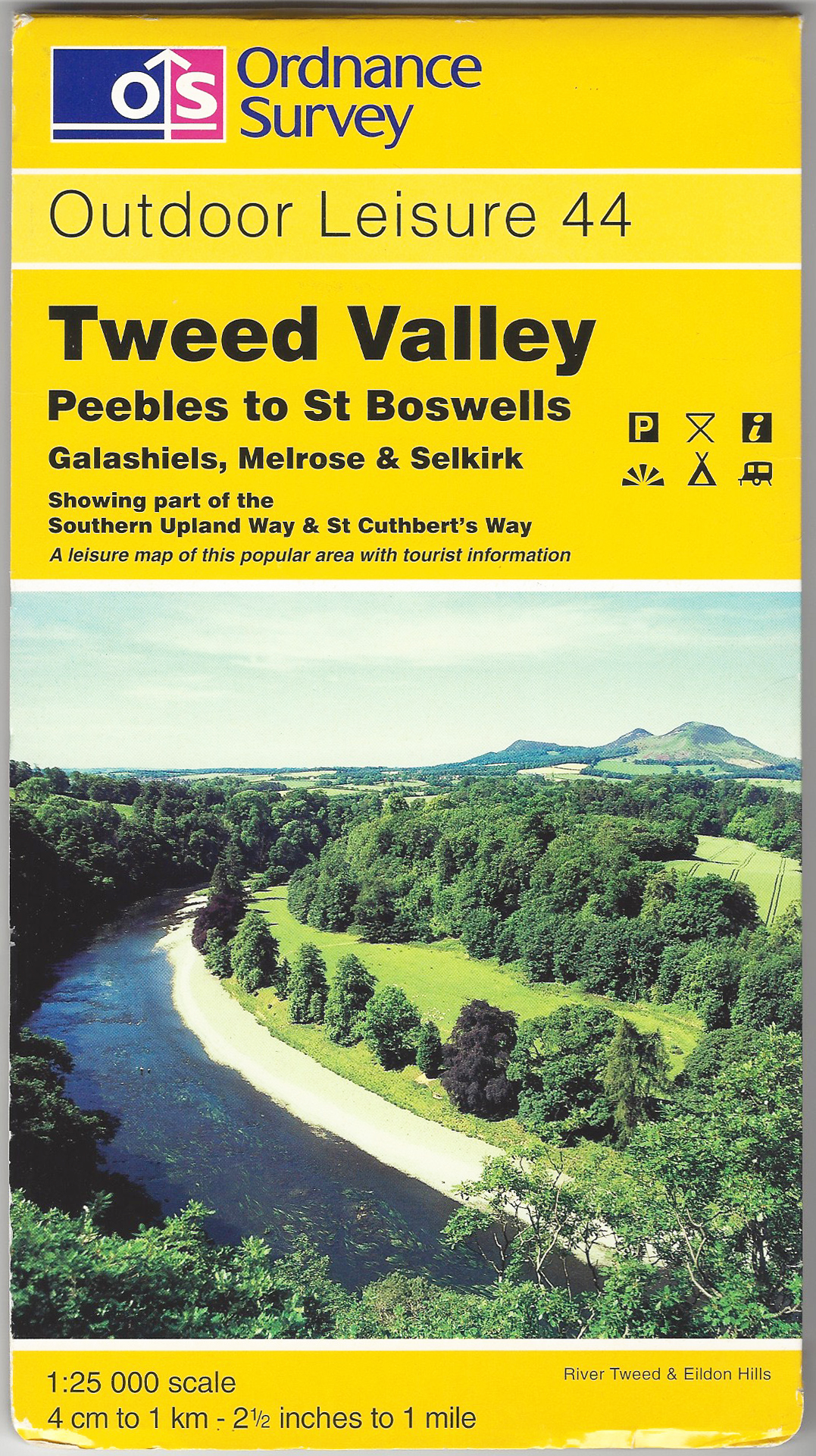 Gathering a multitude of Ordnance Survey maps together over a period of years also brings home a realisation on how the public, users of open spaces and the Ordnance Survey themselves, alter their opinion as to what and how areas should be covered. The double-sided O.S. Outdoor Leisure sheet number 44, only published in 1997, covers the Tweed Valley at a scale of 1:25 000. To get the same coverage from the O.S. today, I would need to purchase single-sided Explorer 337, covering Peebles & Innerleithen, and single-sided Explorer 338, covering Galashiels, Selkirk and Melrose. It is either that, or purchase Landranger 73, covering Peebles, Galashiels and Selkirk, however this is at a scale of 1:50 000.