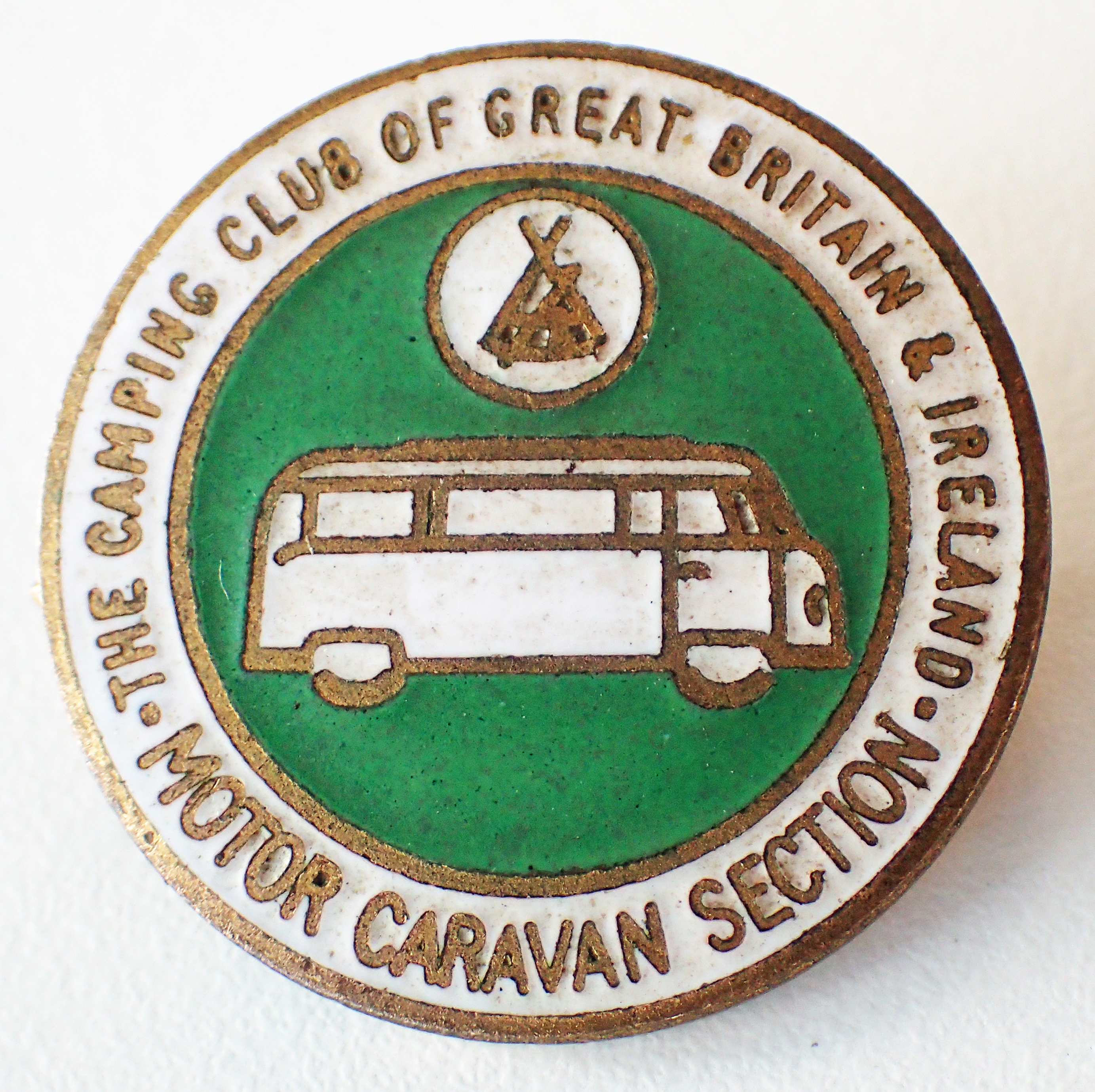 The Camping Club of Great Britain & Ireland- Motor Caravan Section. Pre 1983. Pin back button badge. 24mm. No makers name