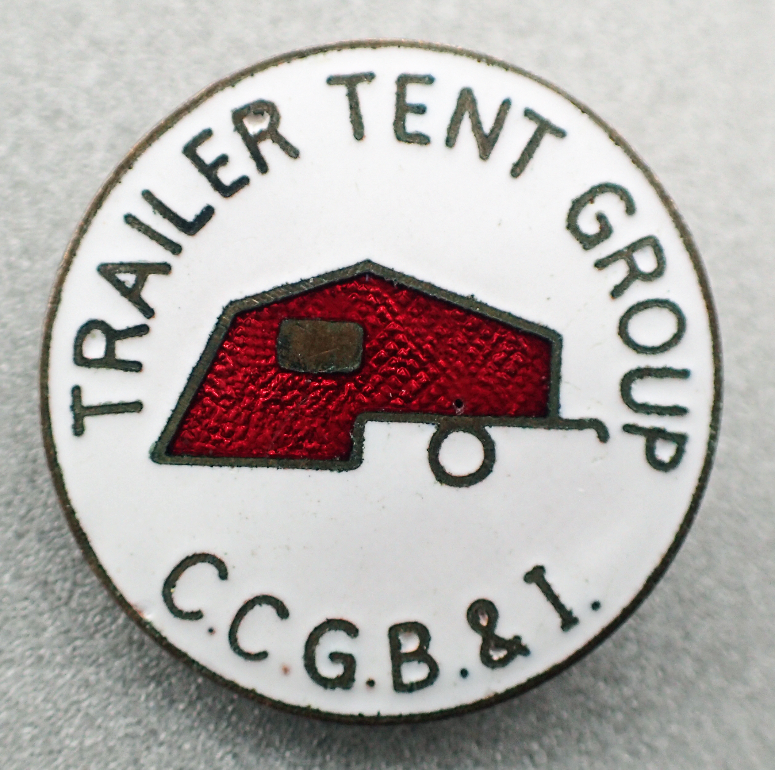Trailer Tent Group- C.C.G.B.& I. [Camping and Caravanning Club of Great Britain & Ireland]. Pin back. Post 1983. 27mm. Maker- Lambournes