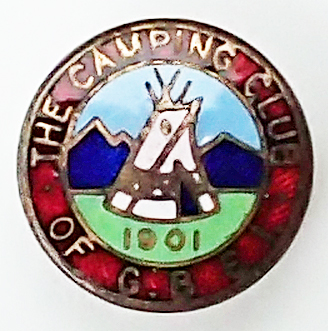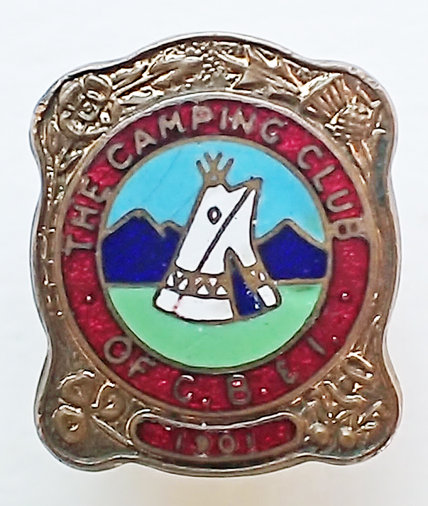 From 1919, club now known as The Camping Club of Great Britain and Ireland. Hand painted enamelled badges became available for club members after their second name change when a ‘wigwam’ pennon and badge were introduced by the club in 1920. Membership then 1400.