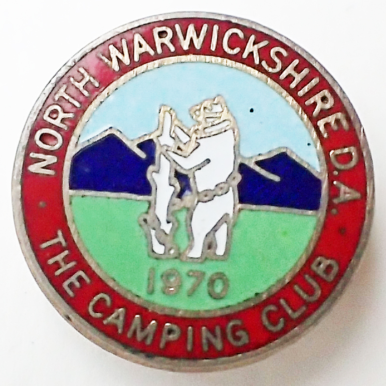 Enamel badge of The Camping Club-North Warwickshire District Association, 1970. Pin back. 25.45mm. No maker’s name