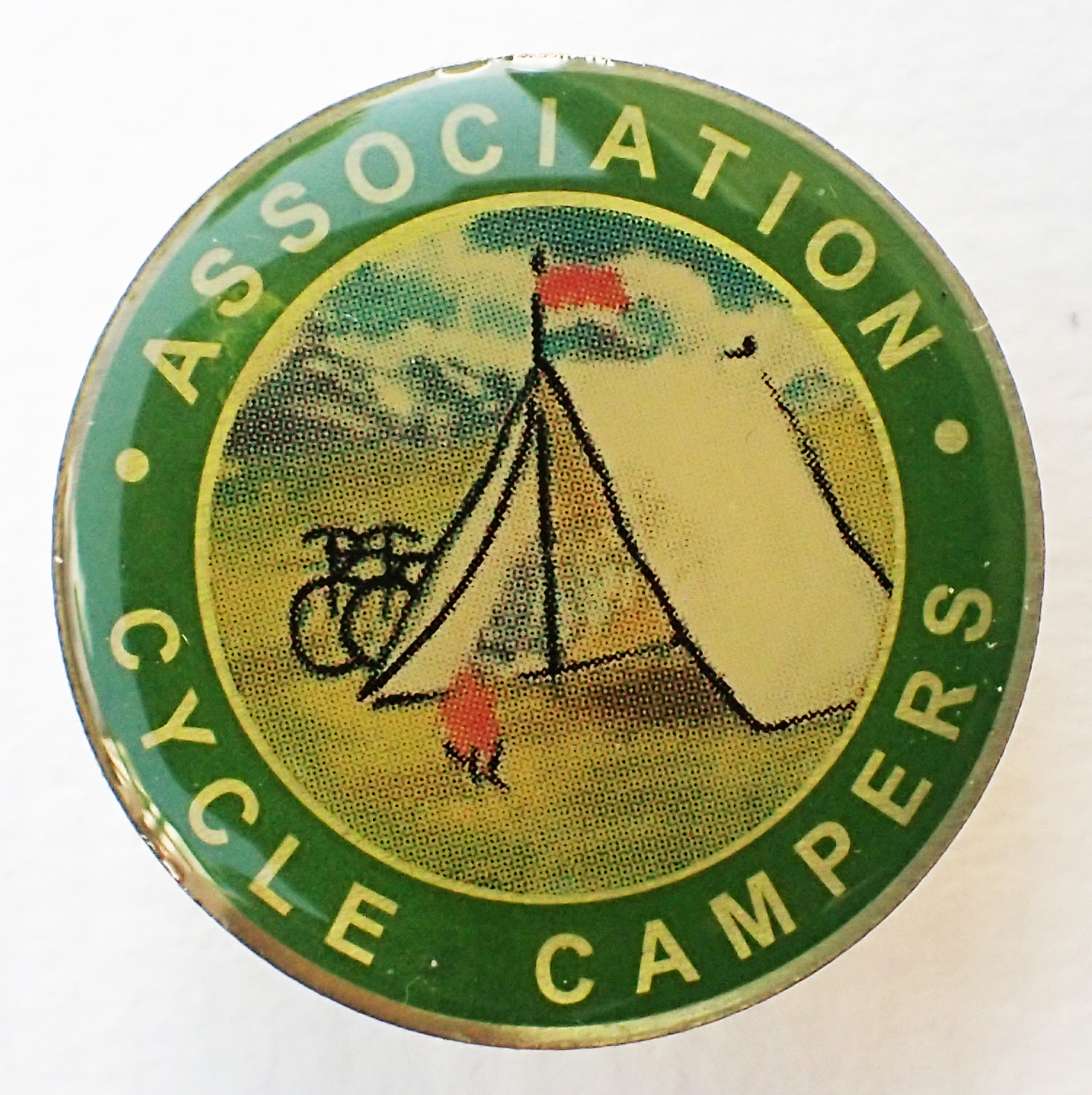 Association of Cycle Campers badge. Pin back. No makers name. 20.4mm. This was the original badge available to members