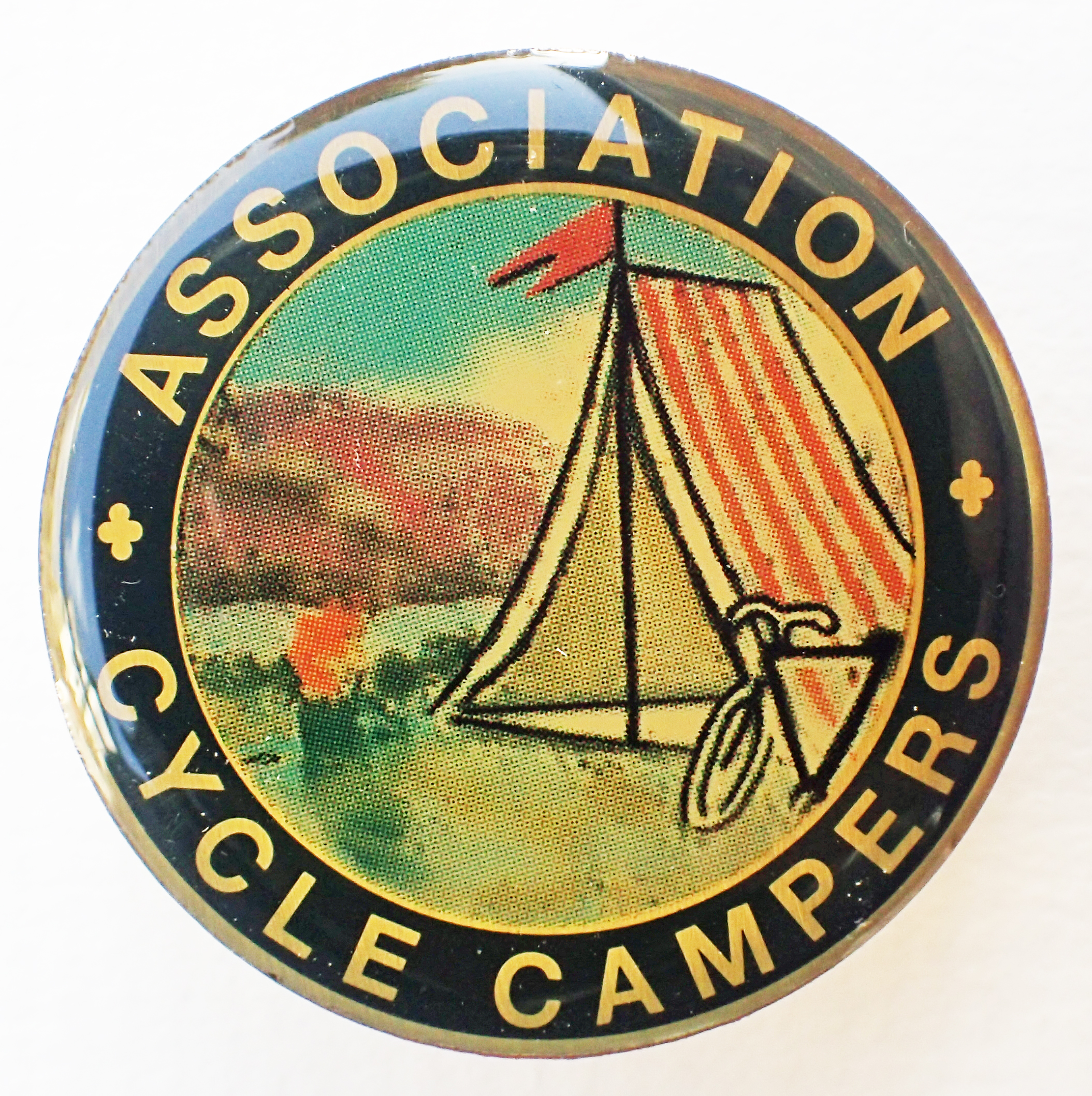 Association of Lightweight Campers– sub-section. Enamel badges were introduced for the first incarnation of The Camping Club in 1904 with the then name Association of Cycle Campers (see above), the name was resurrected when this sub-section was reformed in 1945 as a specialised section of the main club. Enamel badges were available for no more than twenty years, when the name was altered in 1965 to Association of Cycle and Lightweight Campers and finally to Association of Lightweight Campers in 1984.