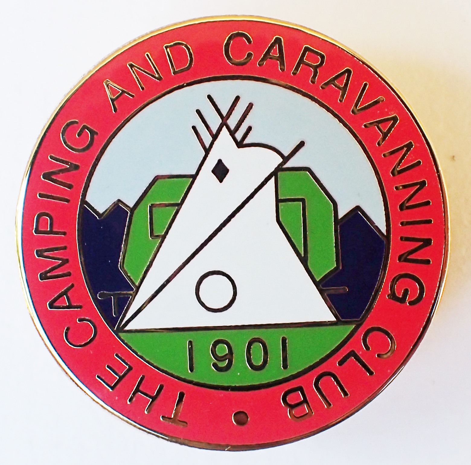 Enamel badge. The Camping and Caravanning Club, post-1983. Pin back. 23.65mm. No maker’s name. Note number of tepee support poles