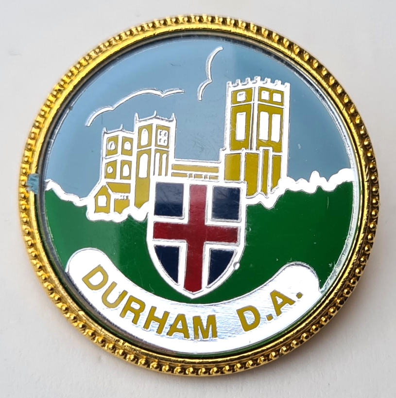 Durham D.A. badge. Post 1983. Brooch pin with safety wheel. 27mm. No maker’s name