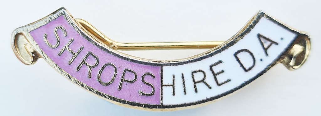 Enamel Shropshire District Association badge. Pin back. 34.70mm. No makers name