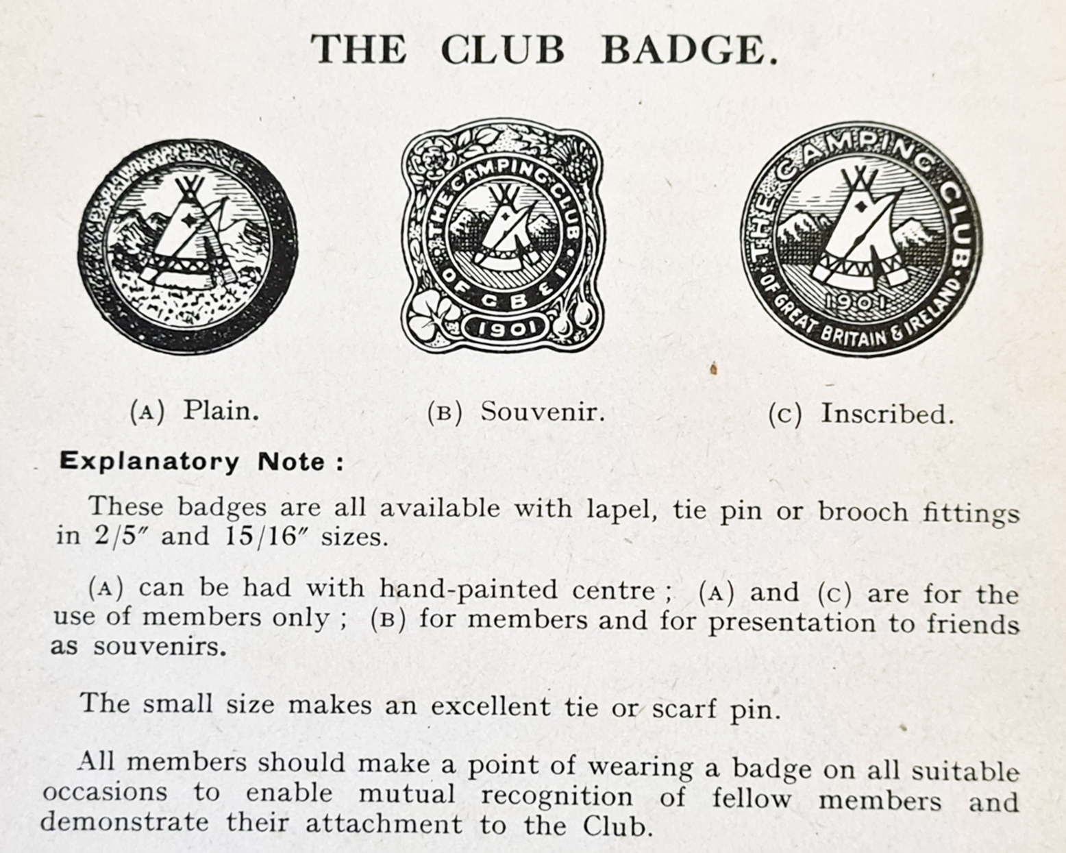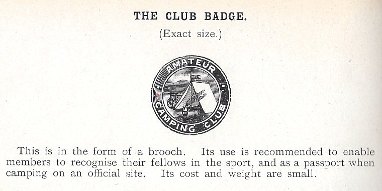 From: Handbook of The Amateur Camping Club, 1914. Badges cost 2s 6d, postage 1d extra