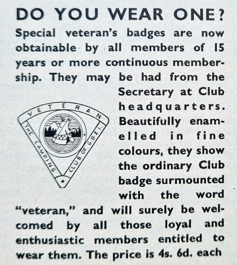 Advertisement for ‘Veteran’ badge, from 1959 Club Year Book